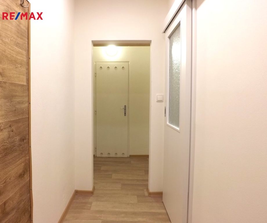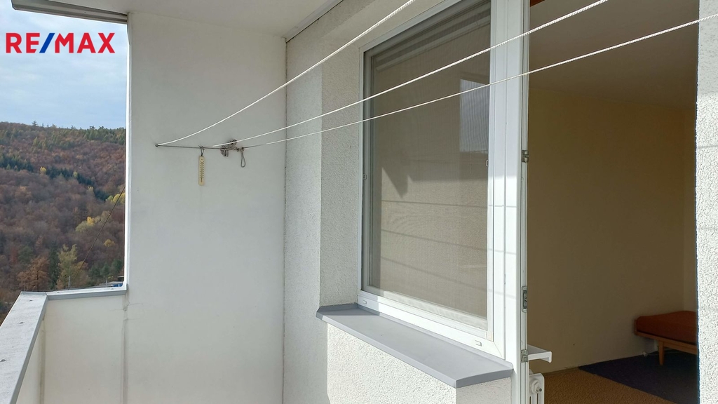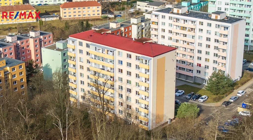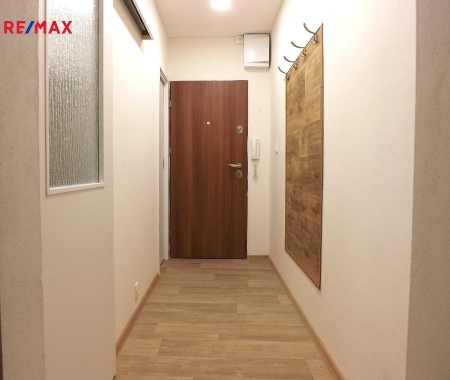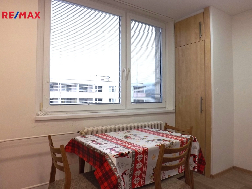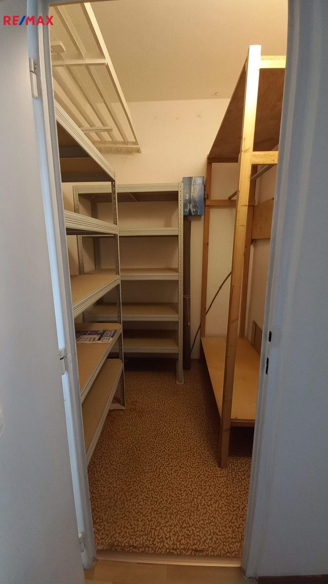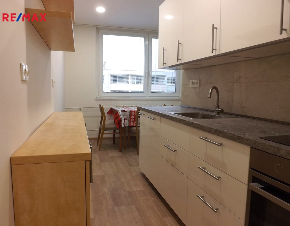 Jedná se o panelový byt v dispozici 2+1 s lodžií. Podlahová plocha 56 m2 - pokoje 16 m2 a 15 m2 (částečně vybaveno - obývací stěna, konferenční stolek, sedací souprava, postel), kuchyň 12 m2 (nová kuch.linka IKEA - el.trouba, indukční varná deska, digestoř, stůl a 3 židle), chodba s vestavěnou skříní, šatna s policemi (3 m2), velká lodžie (4 m2), sklep v suterénu. Udržovaný byt je po rekonstrukci (2025), nové posuvné dveře do kuchyně a do koupelny. Je zde zděné jádro obložené kachlemi, WC vedle koupelny (umyvadlo, sprchový kout, na podlaze dlažba), podlahy obytných místností jsou plovoucí a v kuchyni je lino, lodžie s keramickou dlažbou. K bytu náleží sklep (2 m2). Plastová okna bytu míří na sever (kuchyň, pokoj), k jihu (pokoj s balkonem). Možnost napojení na vysokorychlostní internet (100/100 Mb á 500,- Kč). V domě nový výtah, úklid je zajištěný.