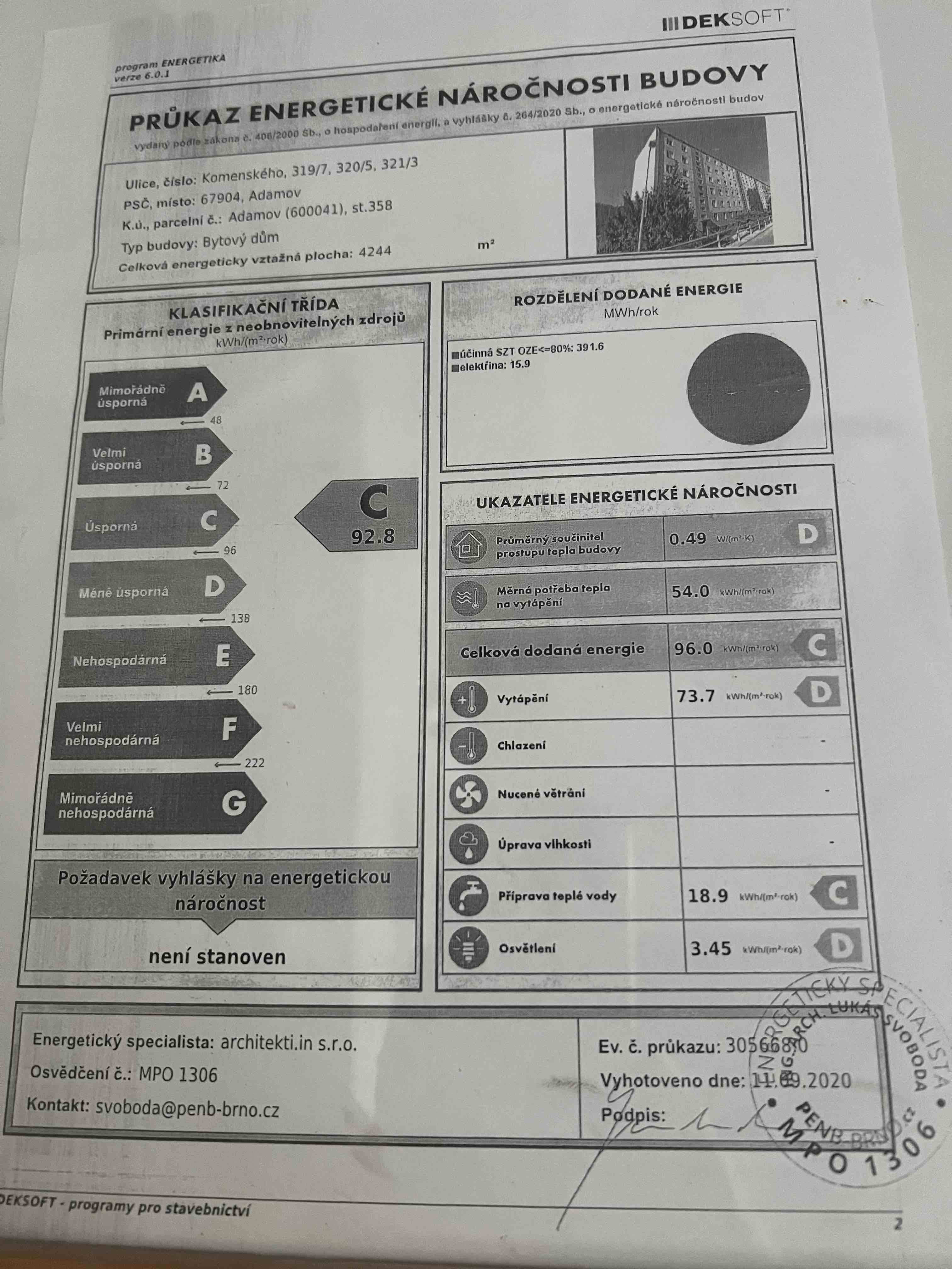 - Energetický ukazatel podle vyhlášky: č. 78/2013 Sb.
