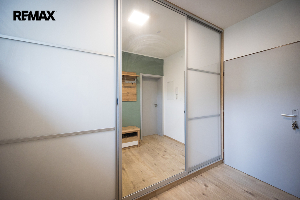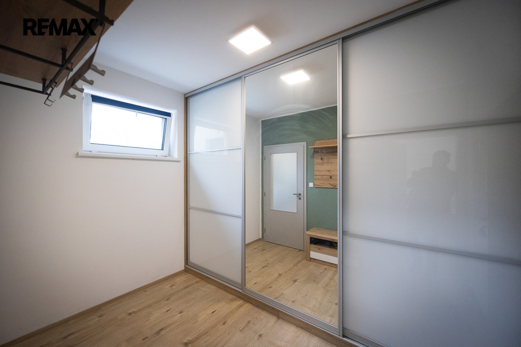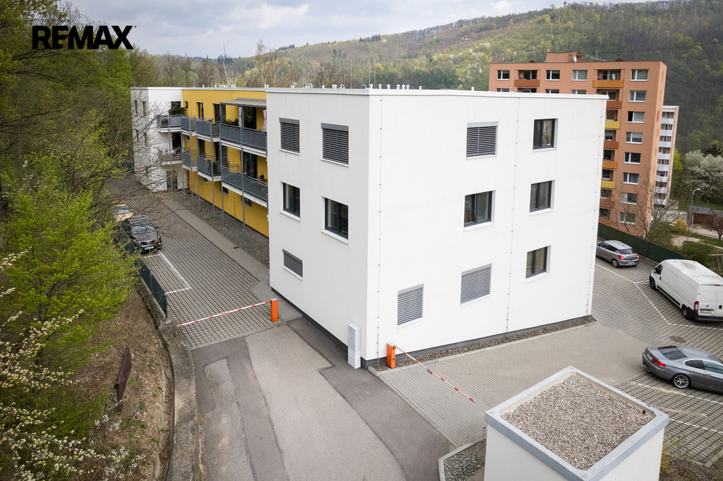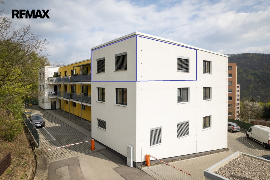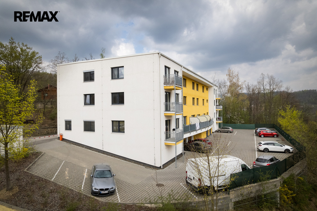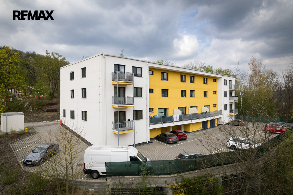 Podlahová plocha bytu je 58,4 m², pokoj s kuchyňskou linkou 32 m² s výstupem na balkon, ložnice 13 m², koupelna 5 m², vstupní hala 8 m² s vestavěnou skříní. Kuchyňská linka na míru s vestavěnými spotřebiči. V pokojích jsou podlahy z vinylu, plastová okna (trojskla) s předokenními žaluziemi, k dispozici sklep v suterénu a parkovací místo (č. 16) na vlastním parkovišti za závorou. Dvě okna z obývacího pokoje směřují k lesu směrem na západ, okno z ložnice je orientováno do údolí na jih (příjemné vnitřní klima po celý rok).