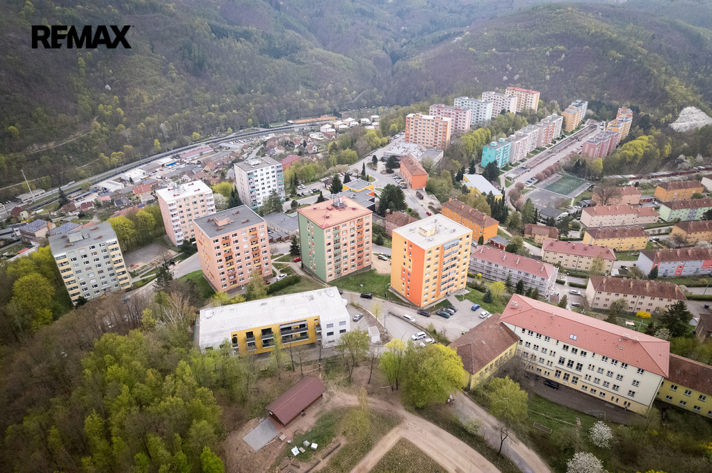 Prodej bytu v Adamově (ul. Ronovská): prostorný cihlový 2+kk s balkonem, sklepem, parkovacím stáním