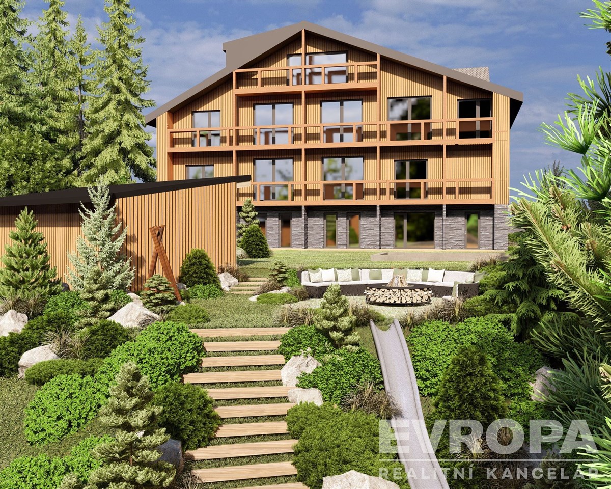 Prodej horský apartmán, novostavba, byt 2kk na horách 72, m2 z toho terasa 32,2m2, výhled do lesa,