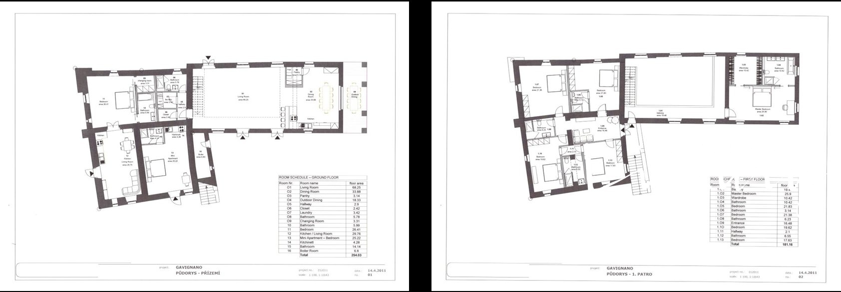 Na stavbu domu je zpracována studie s přípravou na stavební povolení. Místní regulativ umožnuje zastavěnou plochu 900 m² a možnost úpravy studie na čtyři bytové jednotky. Styl nemovitosti zachovává klasickou Toskánskou architekturu, při poskytnutí maximální míry současné úrovně komfortu, včetně bazénu