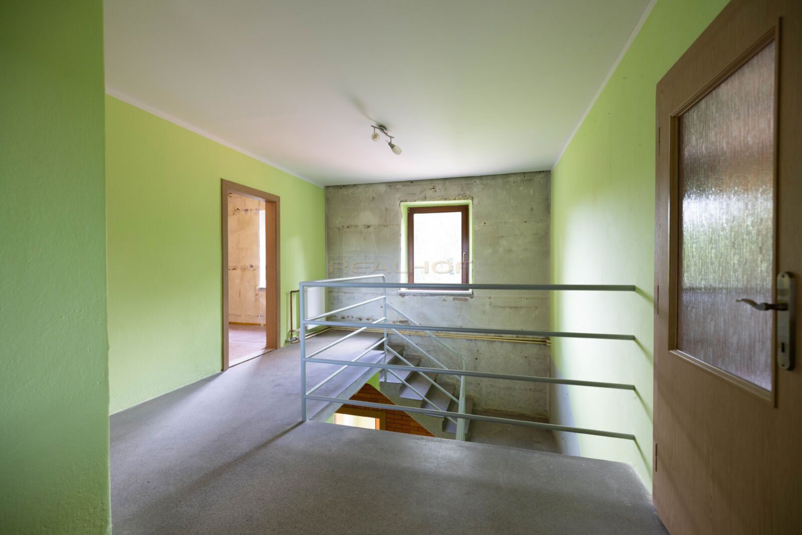 Patro: chodba 18,28m2, 4 pokoje 16,55m2, 10,79m2, 10,33m2 a 8,82m2, WC.