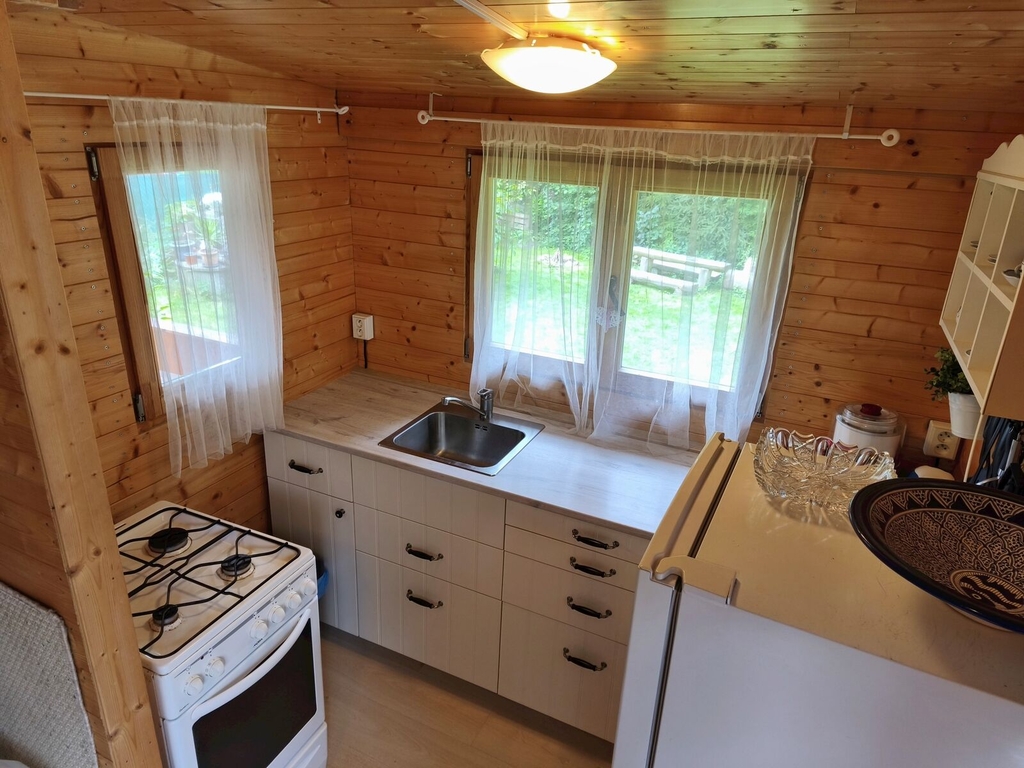 Pečlivě udržovaná chata se skládá z velké obývací místnosti/ložnice s krbovými kamny, předsíně a účelného kuchyňského koutu se sporákem. K dispozici dále sprchový kout a samostatné WC. Celková velikost pozemku činí 630 m2 (zastavěná plocha 31 m2) + dřevěná krytá terasa s posezením 7,8 m2.