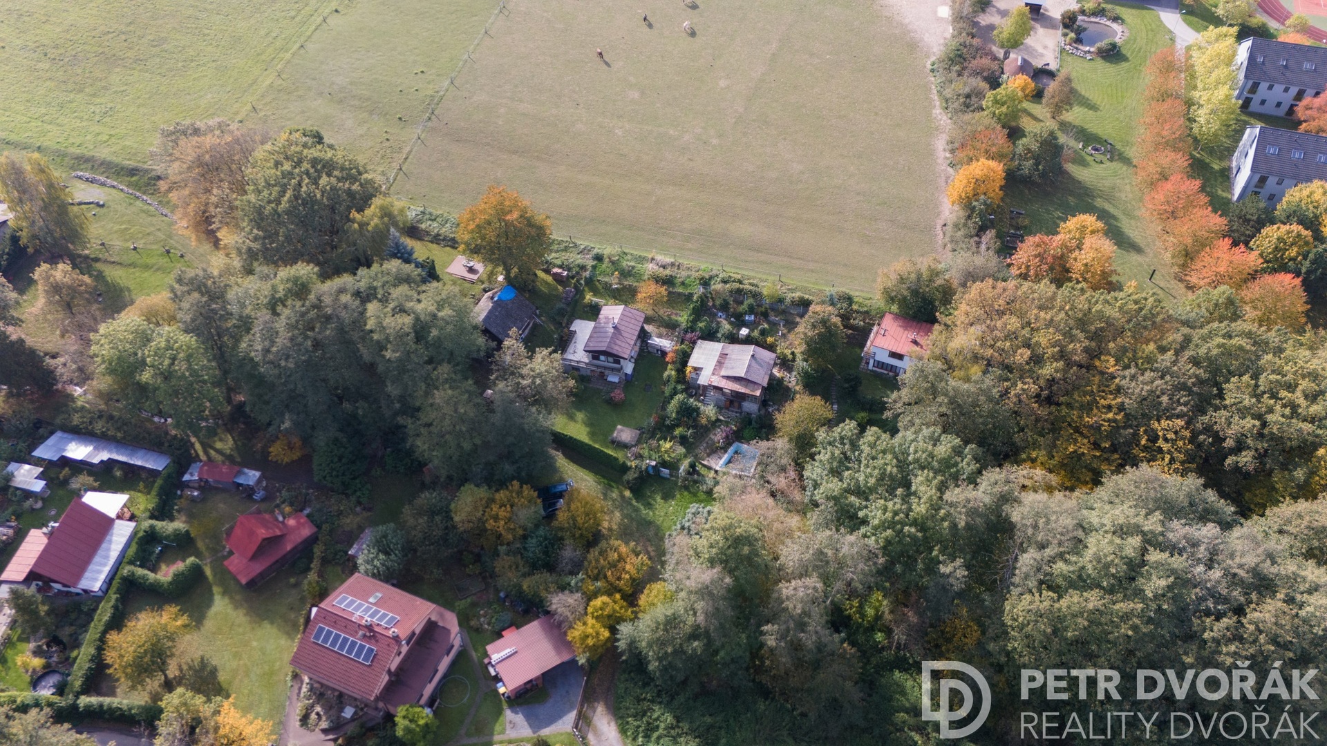Oplocený pozemek s vrátky přímo k výběhu koní