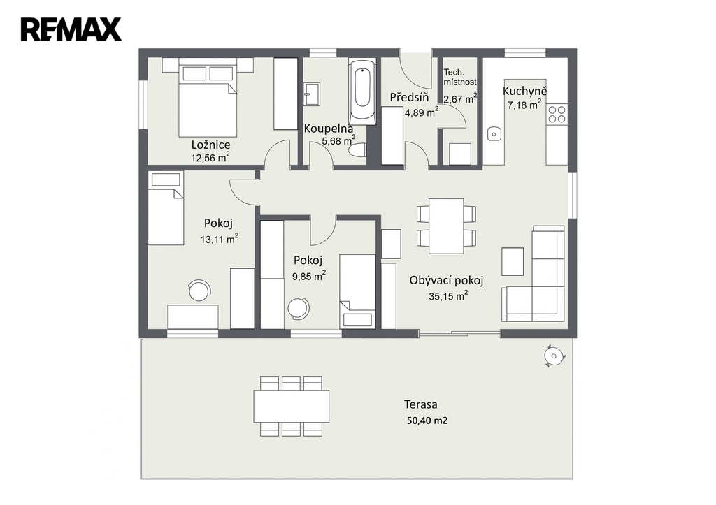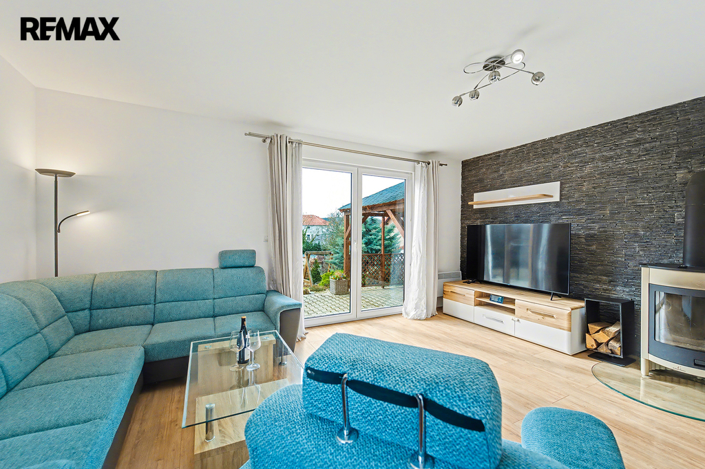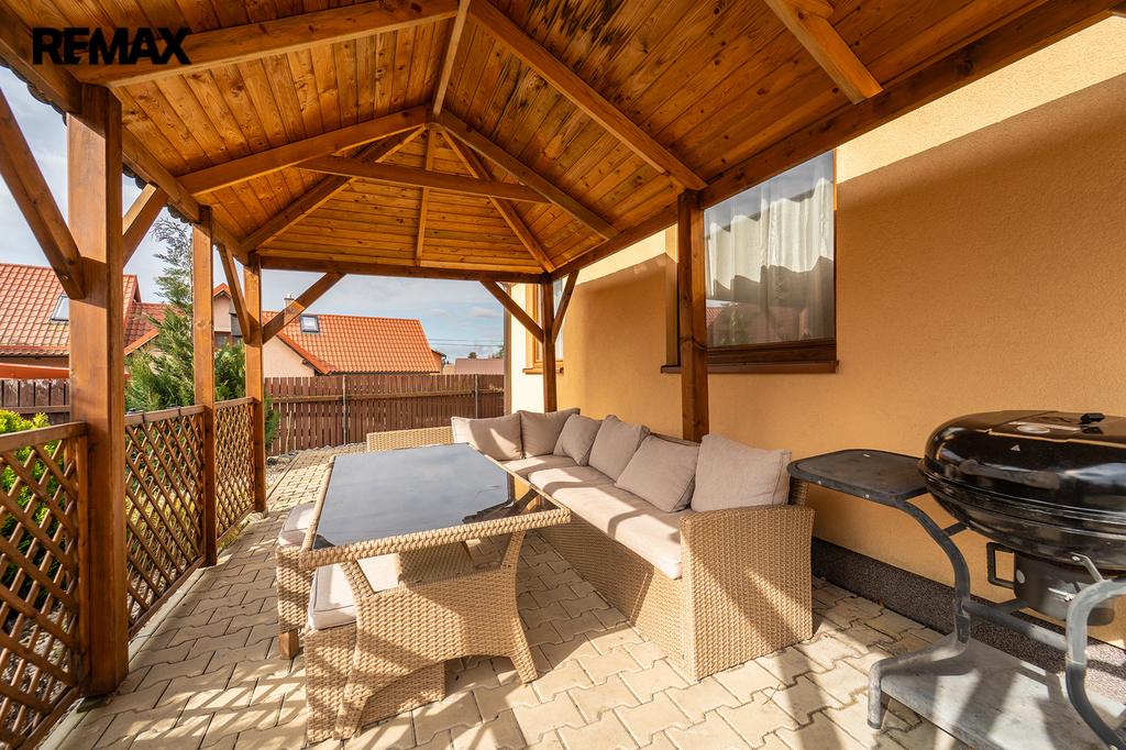 A čím Vás dům rozhodně zaujme? Srdce domu tvoří prostorný obývací pokoj s kuchyní, kde můžete trávit pohodově společný čas s rodinou. Na obývací pokoj navazuje venkovní terasa 50 m2, kde s rodinou nebo přáteli posedíte u grilování.