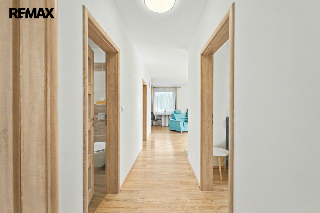 V přízemí pak najdete další tři pokoje, takže zde budete mít dostatek místa pro soukromí jednotlivých členů rodiny. Dále pak prostorná koupelna a praktická komora.