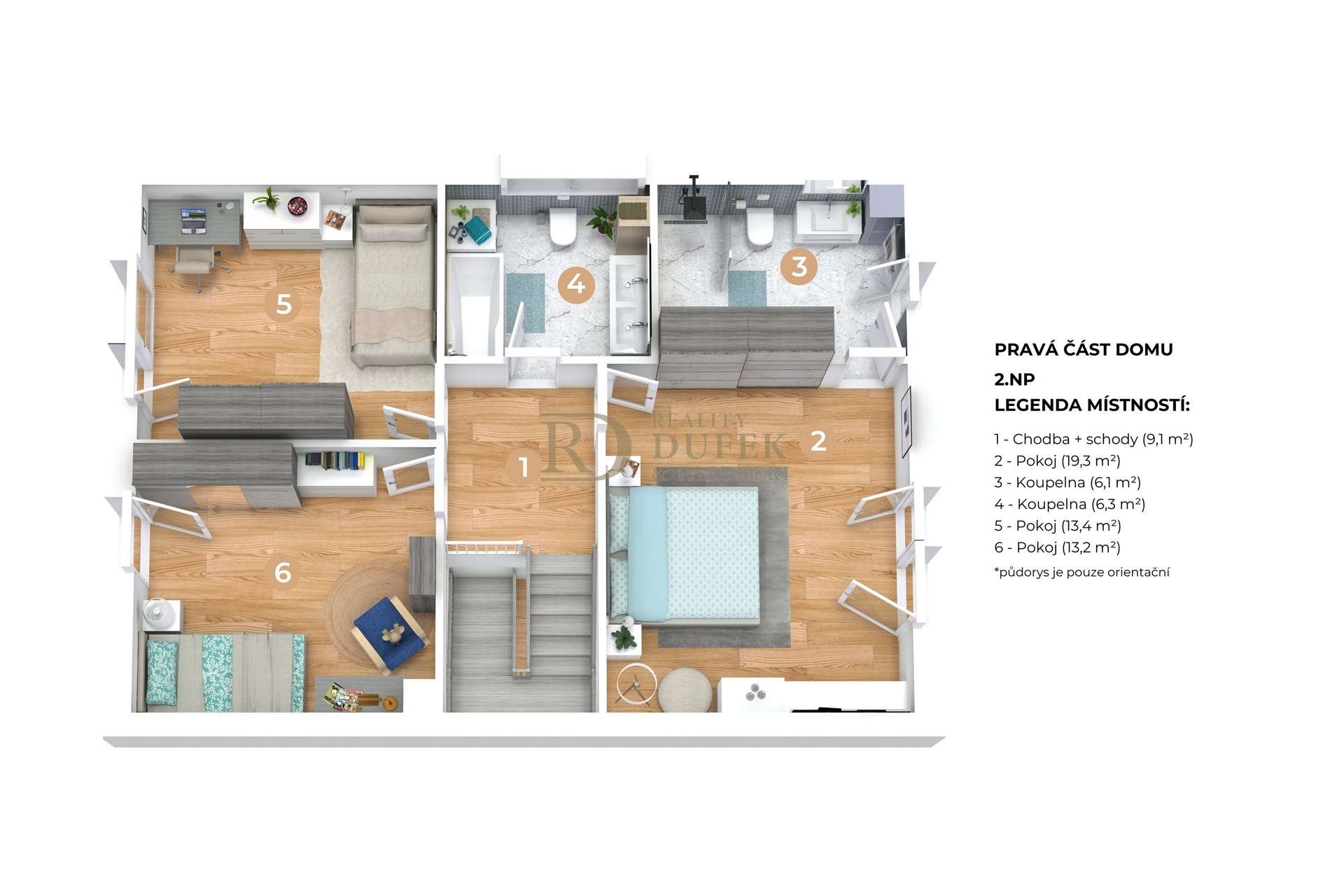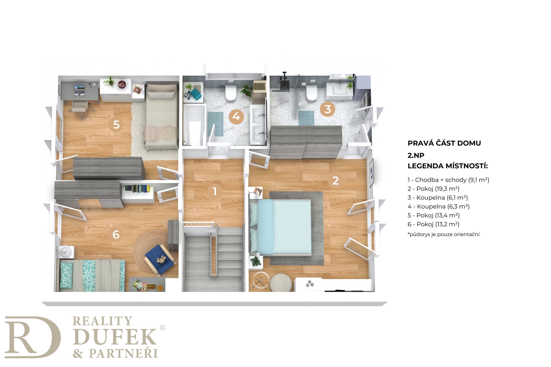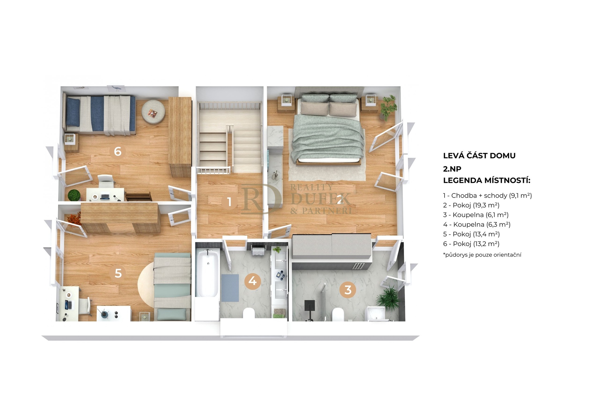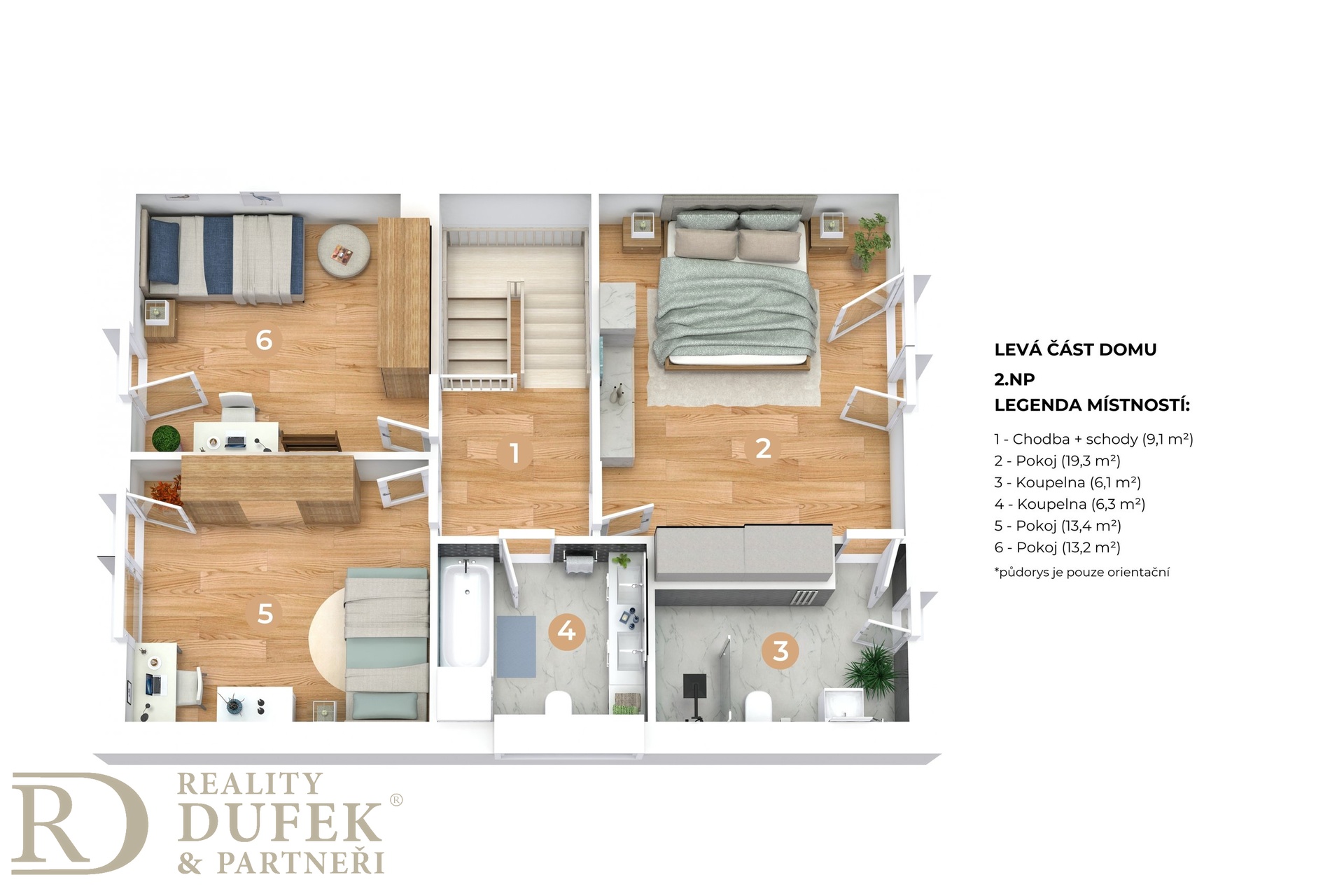 • Patro: tři prostorné ložnice, druhá koupelna, dostatek úložného místa.