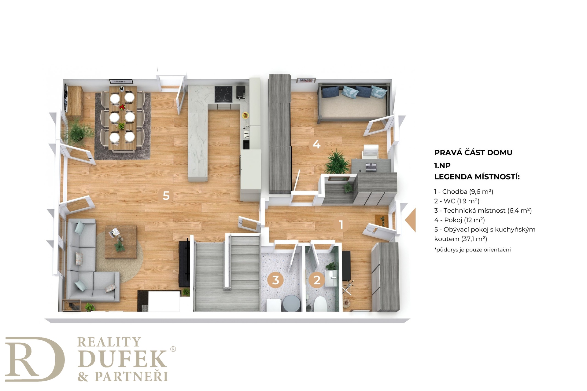 • Každá jednotka má dispozici 5+kk – ideální pro rodinný život i home office.