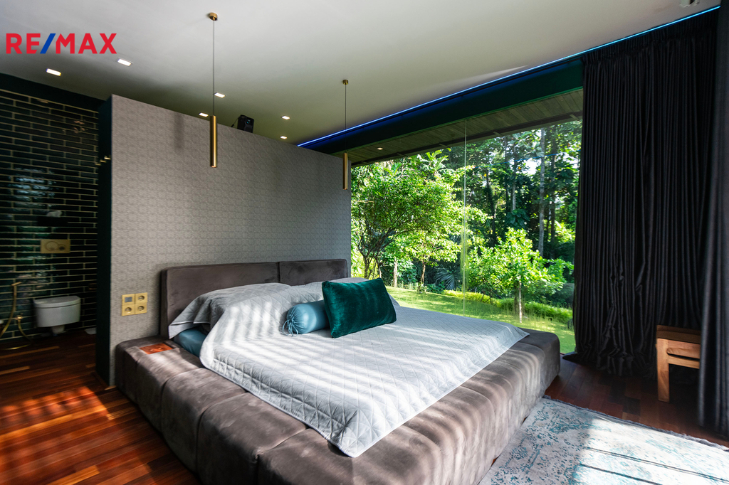 Prostorné interiéry, velkoformátová okna propojující interiér s přírodou, dřevěné podlahy, elegantní kuchyně s výhledem do zahrady, ložnice s přímým vstupem ven a velkolepý obývací prostor – to vše dohromady tvoří neobyčejný domov. Vila disponuje dvěma ložnicemi, ale prostorově působí jako rezidence mnohem větší kategorie.