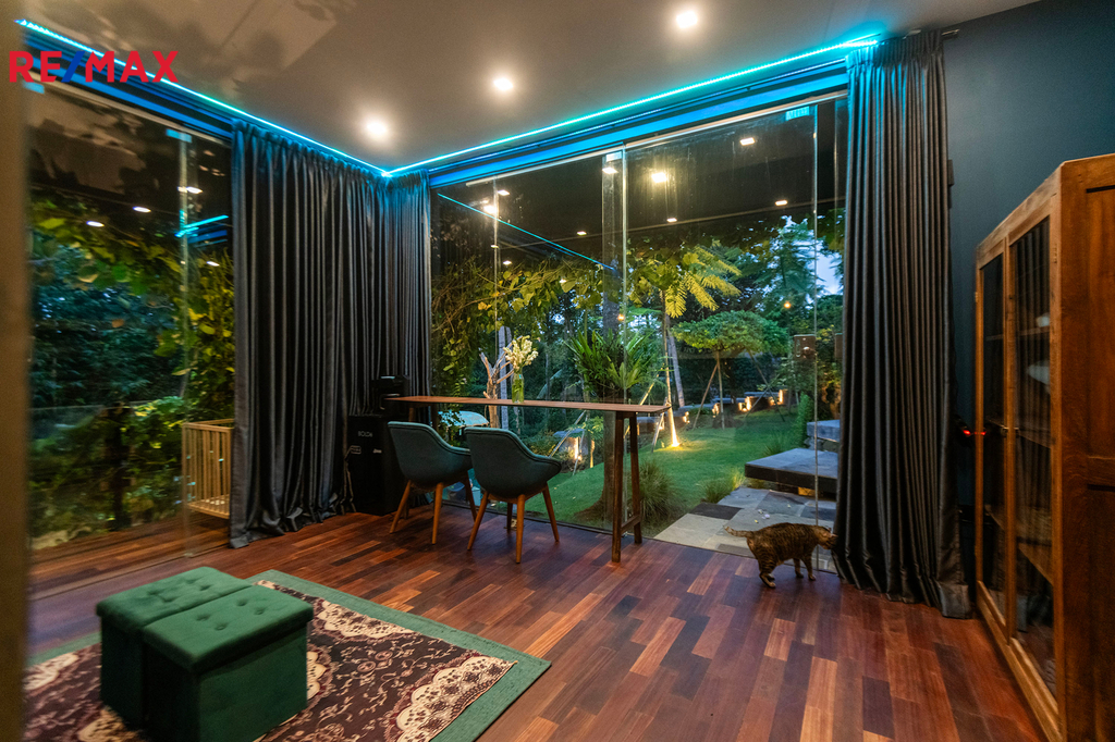 Tato vila se nachází v naprostém soukromí, obklopena bujnou zelení tropické zahrady o rozloze více než 1800 m². Součástí pozemku je hlavní vila se dvěma ložnicemi a prostorným obývacím prostorem, stejně jako samostatný apartmán, který je ideální pro hosty, pronájem nebo jako klidné místo pro práci. Přírodní materiály, architektura spojená s okolní krajinou a promyšlené detaily vytvářejí harmonické prostředí, které se těžko popisuje – musí se zažít.