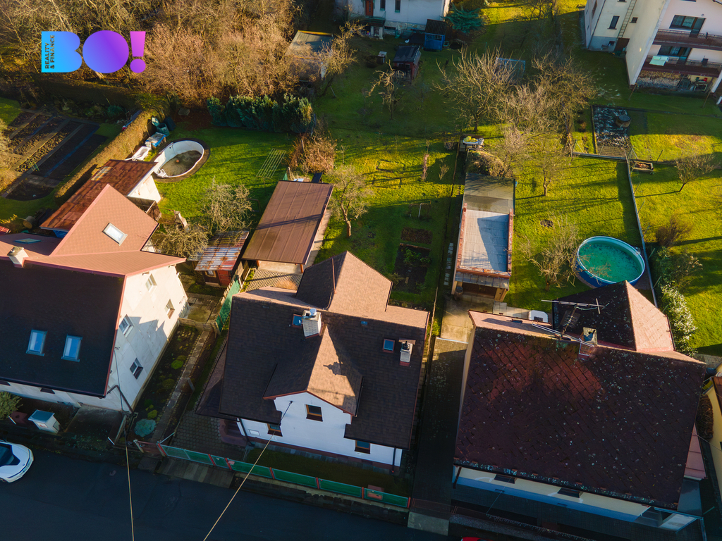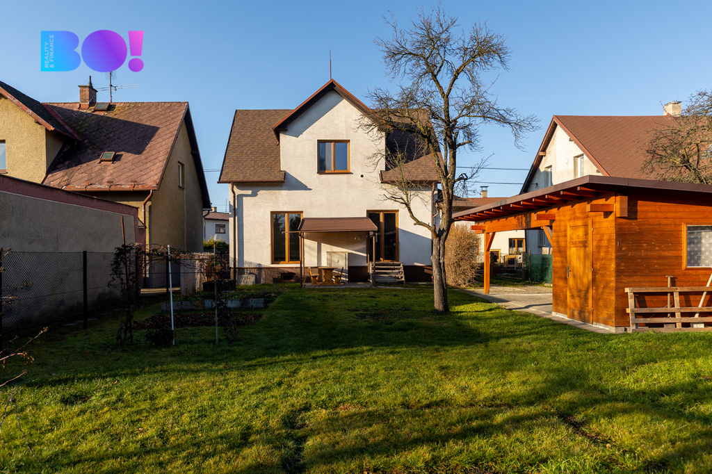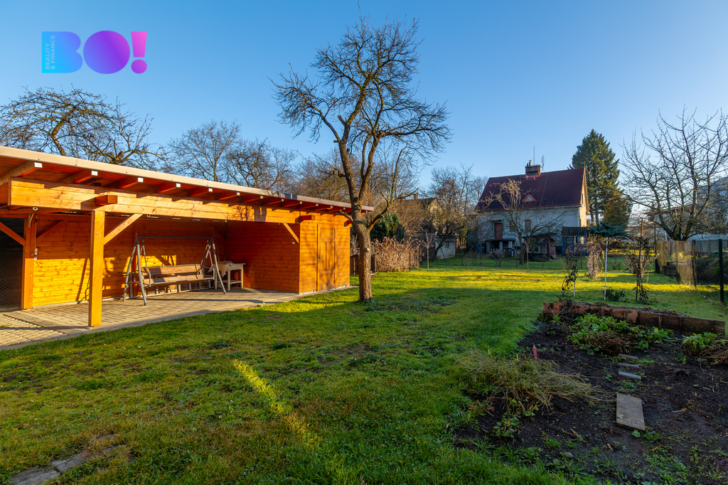 A co venku? Čeká na vás rovinatá zahrada s ovocnými stromy a keři, přístřešek pro auto, včetně úložných prostor, případně malé dílny. Ideální místo pro letní posezení, rodinné oslavy nebo třeba pěstování vlastní zeleniny.
