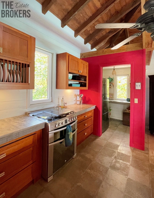 Camp Bay je opravdu zvláštní komunita nad vodou i pod vodou, podobných míst už na tomto světě moc nezbylo. Tato vila byla navržena renomovaným Roatanským architektem Halem Sorrentim, jehož jedinečné domy v ostrovním stylu můžete vidět po celém Roatanu. Dům poskytuje nádherný výhled nejen na pláž a oceán, ale také na horské úbočí a Port Royal National Forest, který nabízí to nejlepší z obou světů pro plážové povaleče a milovníky hor. Obrovské terasy jsou nejen skvělé pro nalezení soukromého místa na lenošení, ale jsou také perfektní pro zábavu se spoustou míst k sezení. Vnitřní obytné prostory i kuchyně mají přímý výhled na moře, takže i vaření přichází s výhledem. Hned vedle hlavní kuchyně je venkovní kuchyně s vestavěným plynovým grilem a dřezem. Dva prostorné obývací prostory jsou zařízeny moderním a super pohodlným nábytkem Crate and Barrel a West Elm. Hlavní ložnice má také posuvné skleněné dveře na terasu s výhledem na oceán, takže se můžete snadno dostat na terasu a nekonečný bazén, aniž byste museli projít hlavní částí domu. Hlavní koupelna krásně vykachličkovanou vnitřní sprchu s výhledem na moře a také venkovní sprchu hned za dveřmi koupelny na zadní terasu, kde se můžete sprchovat pod hvězdami.