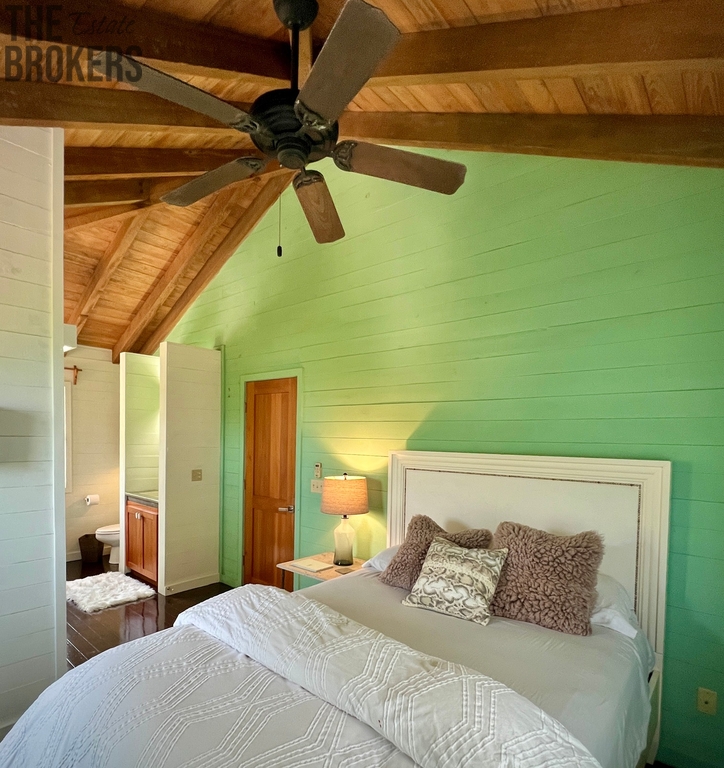 Ložnice pro hosty se nachází v patře s panoramatickým výhledem na moře, Camp Bay Village na východ a kopce na jih, a také se může pochlubit krásně kachlovou sprchou. K tomuto apartmá pro hosty sousedí kancelář s výhledem na oceán, která inspiruje vaši pracovní kreativitu, a lze ji snadno použít jako ložnici s vestavěným patrem na spaní nad pracovním stolem. Jděte po schodech do věže ve 3. patře a zažijete jeden z nejúchvatnějších 180° výhledů na Roatan.