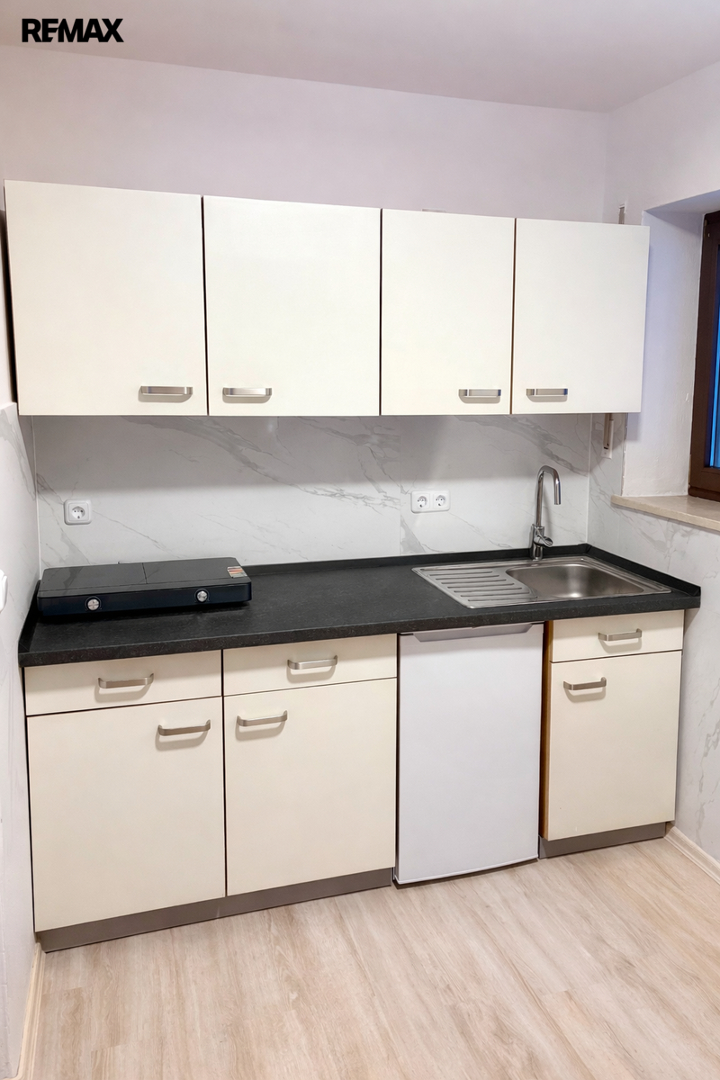 Byt se nachází v 1. NP bytového domu a prošel rekonstrukcí. Byt sestává z obývacího pokoje s menší kuchyňskou linkou a světlé moderní koupelny. Předností pronájmu je vlastní zahrada o velikosti 39,6 m2, na kterou je vstup přímo z obývacího pokoje. Soukromá zahrada je ideálním místem pro relaxaci s krásnou okolní přírodou. Byt se pronajímá nezařízený, je k dispozici včetně parkovacího místa před domem a je volný ihned. Dům je napojený na veškeré inženýrské sítě.