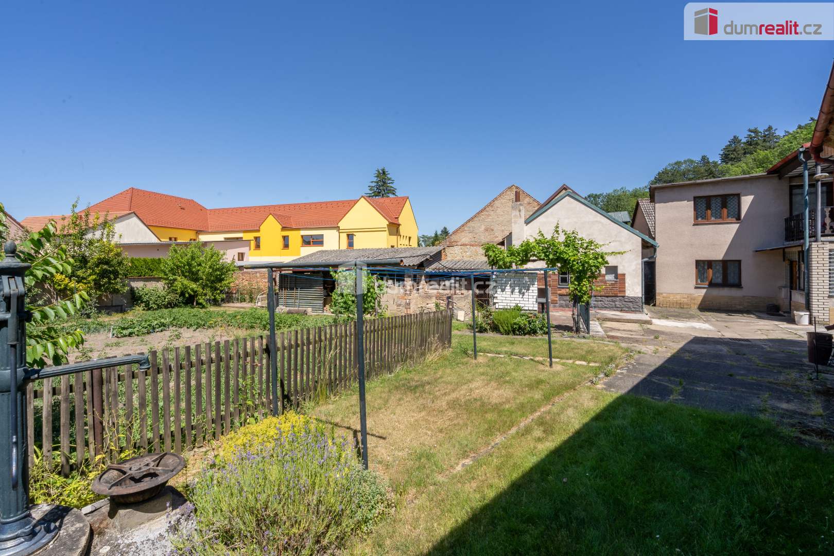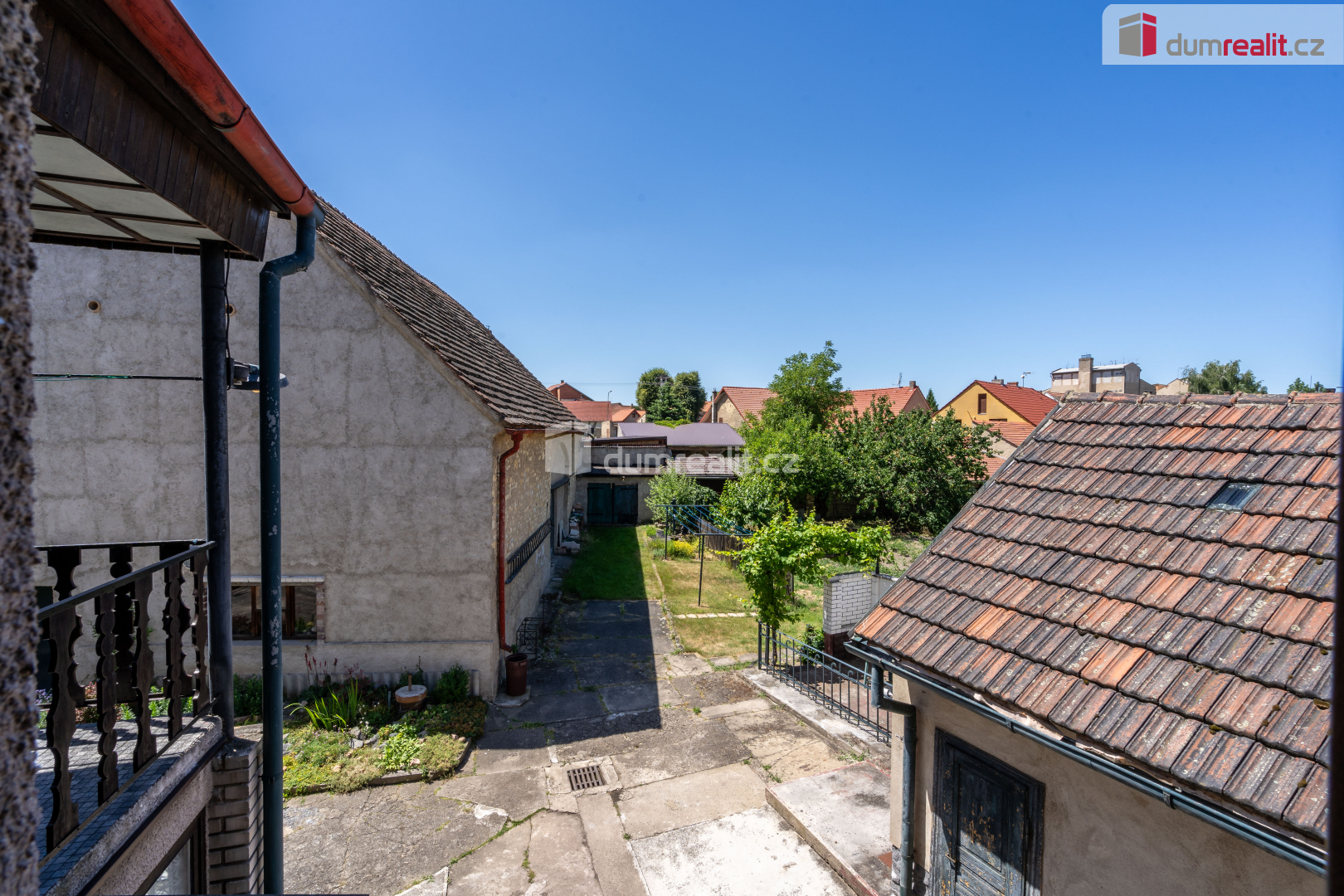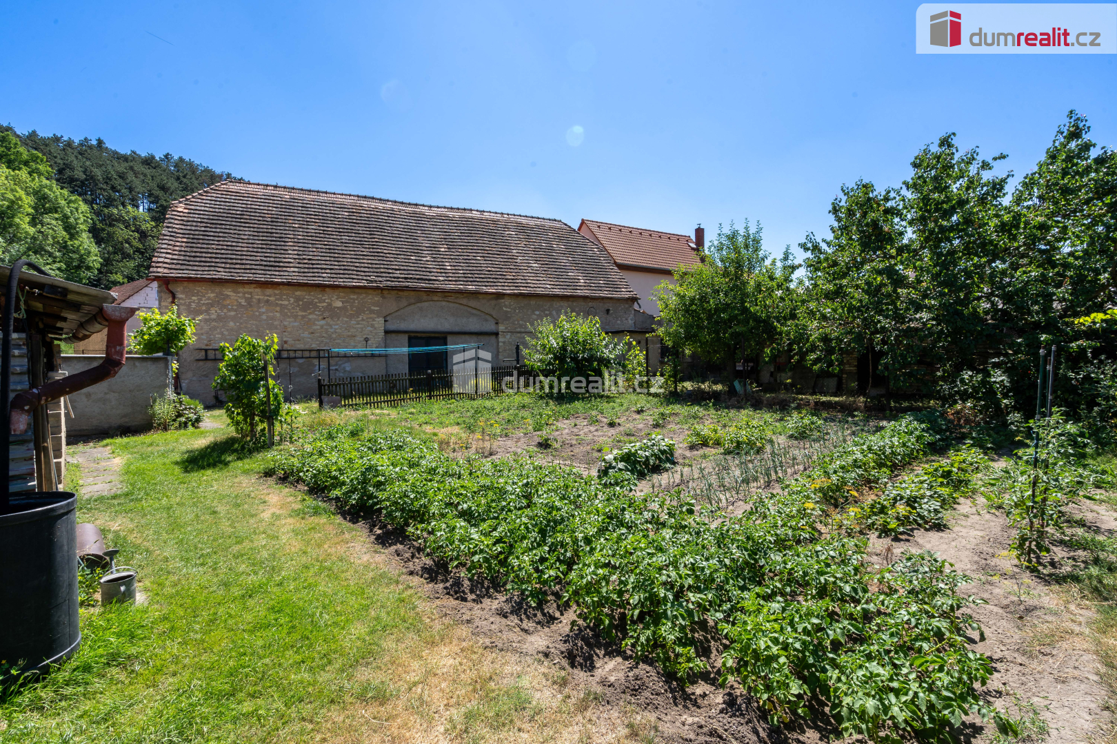 Tento dům ohraničen cihlovou zdí a přístavkama krásně lemuje pozemek se záhrádkou cca 299 m² a dvorek. Zastavěná plocha na pozemku je 728 m² do čehož jsou započítány kromě domu i přístavby a stodola.