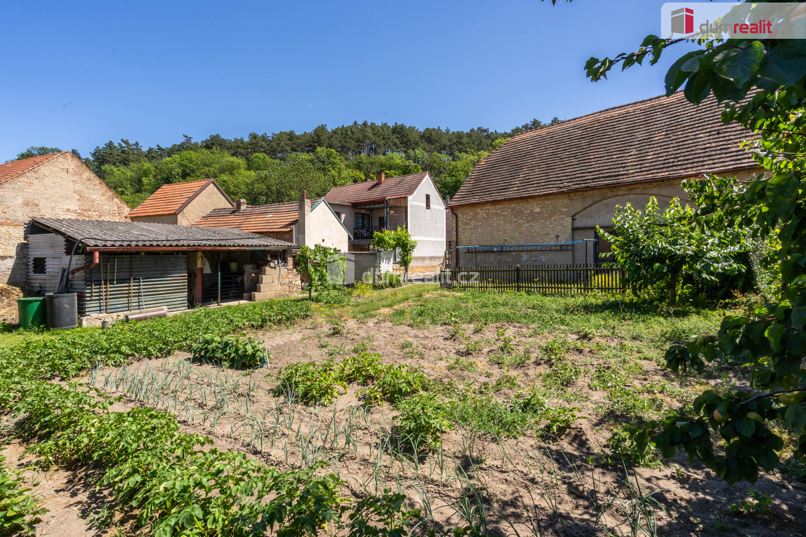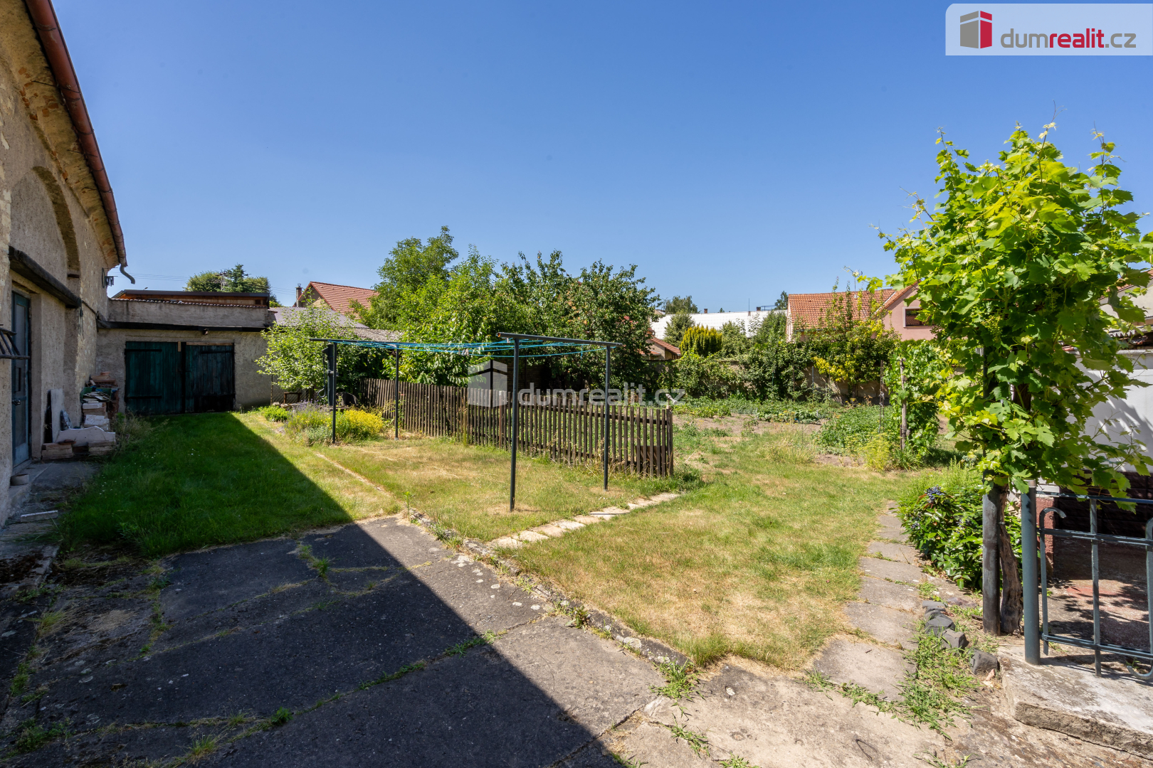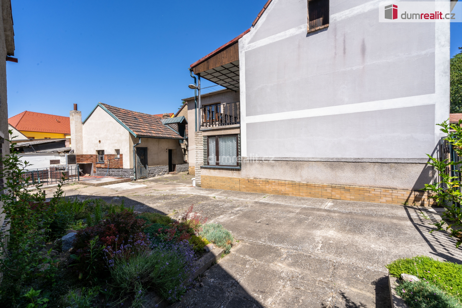 Tento dům ohraničen cihlovou zdí a přístavkama krásně lemuje pozemek se záhrádkou cca 299 m² a dvorek. Zastavěná plocha na pozemku je 728 m² do čehož jsou započítány kromě domu i přístavby a stodola.