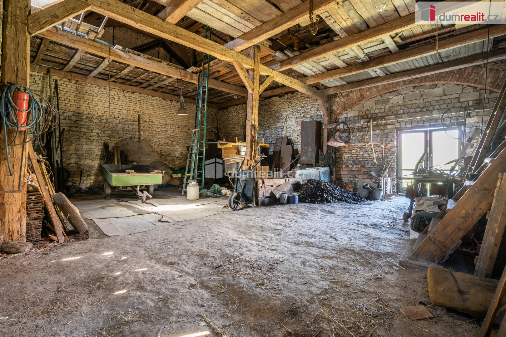 Střecha na domě má cca 15 let novou krytinu, nad stodolou je půl střechy nové, druhá polovina přeložena. Stodola je průchozí z obou stran, takže z ulice se do ní dostaneme.
