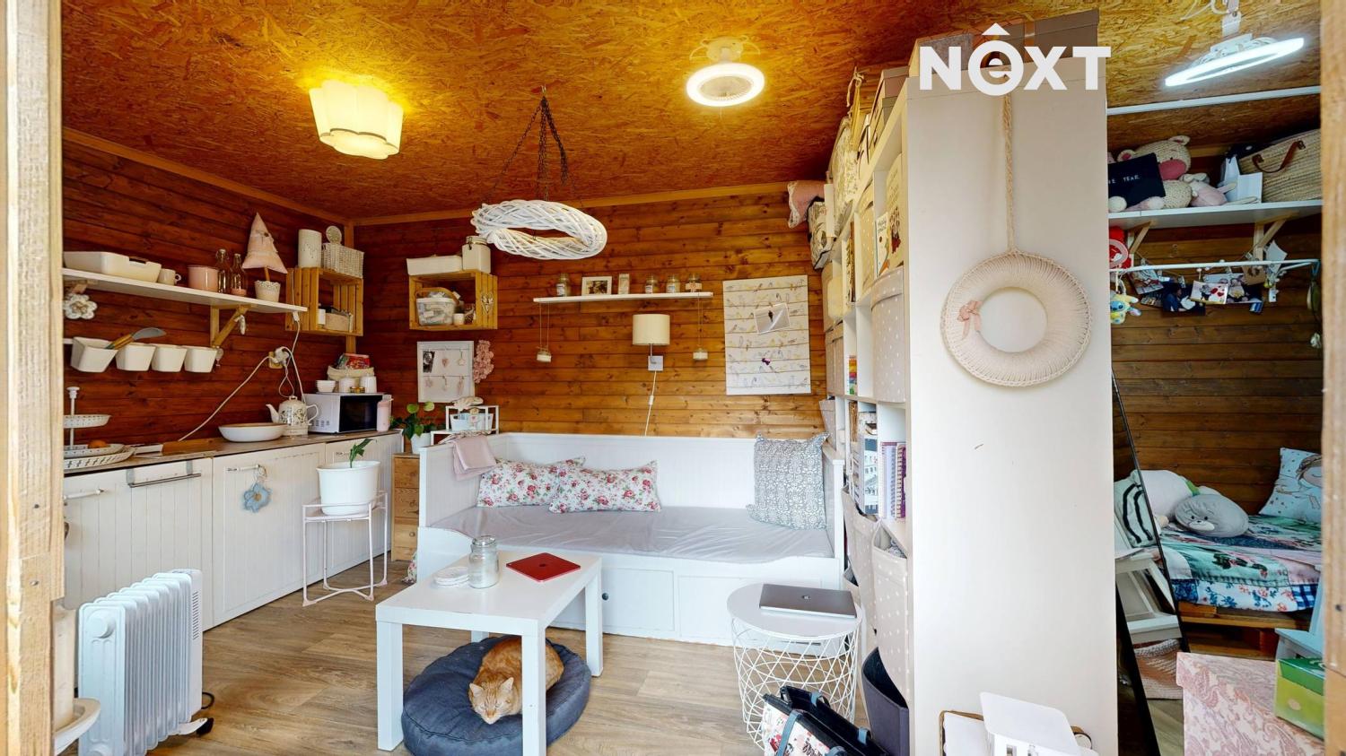 Na pozemku se nachází několik plně funkčních staveb. Hlavní budova je dřevěná chata o rozloze 16 m², dále se zde nachází dílna o rozloze 12 m², kůlna na nářadí o rozloze 6 m² a pergola o rozloze 16 m². Celková zastavěná plocha tak činí 50 m².