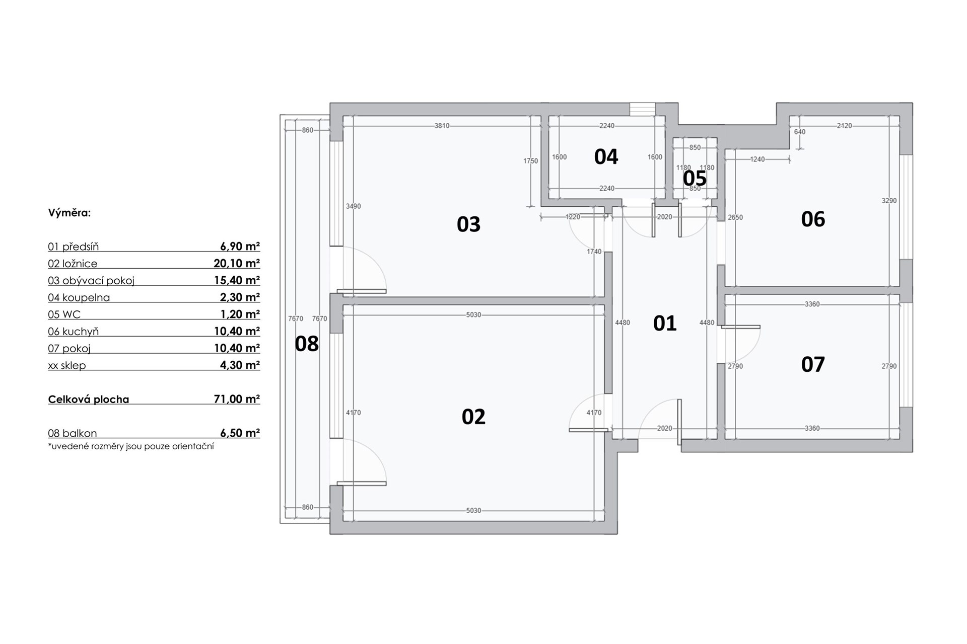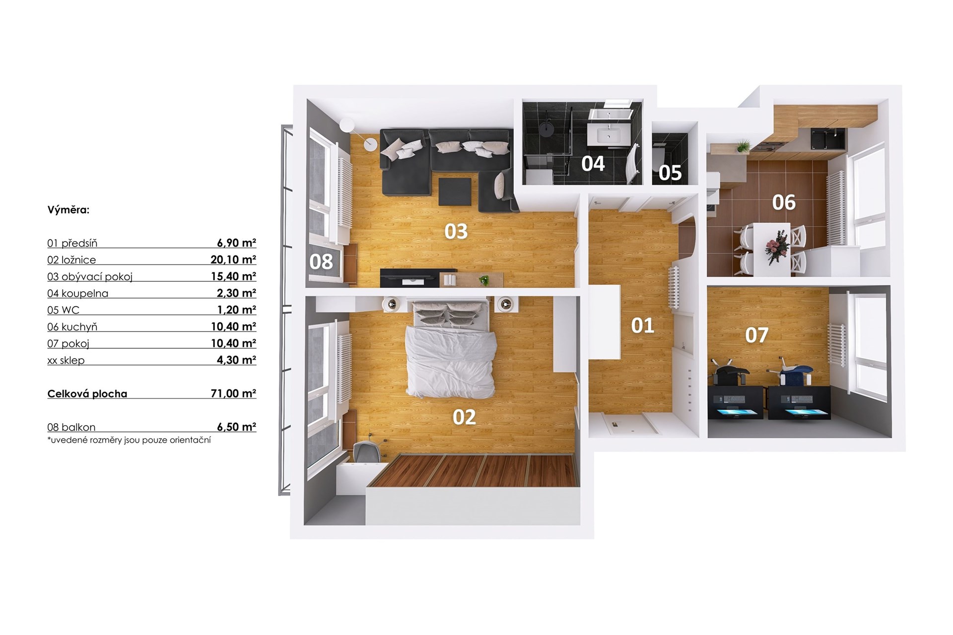 - Celková podlahová plocha: 71 m²