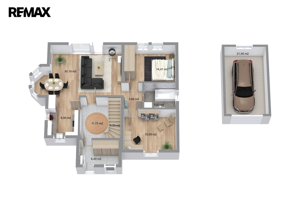 Interiér domu je velmi dobře dispozičně řešen a nabízí více než pět pokojů, které snadno přizpůsobíte potřebám vaší rodiny. Pokoje jsou prostorné a světlé. Moderní vybavení zajistí pohodlí vaší rodiny.