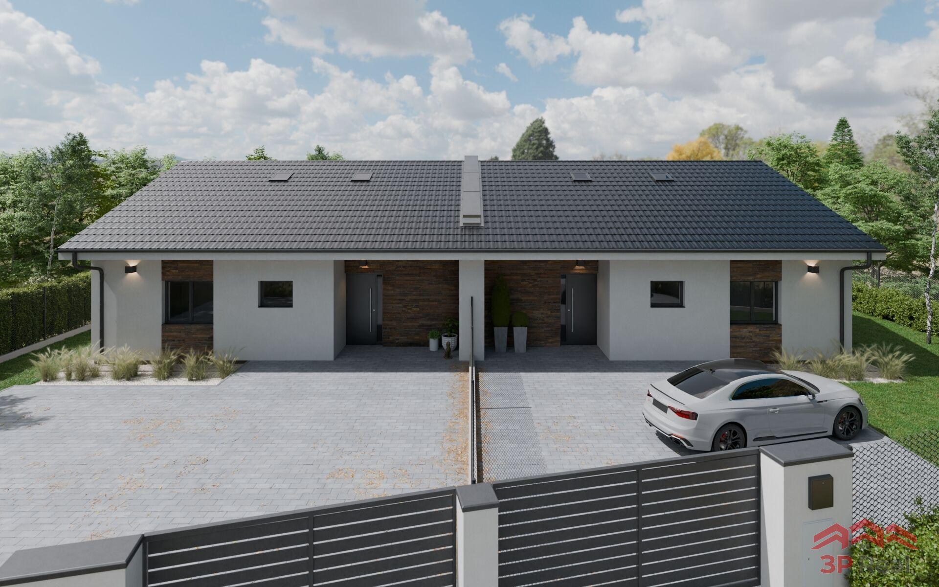 Projekt je zaměřený na úspora a pohodlí: Užitná plocha 121 m² (podlahová 116 m² + 9 m² terasa), na pozemcích 764 m² a 636 m², dost prostoru i na vlastní bazén v zahradě! Tepelné čerpadlo (znamená nízké účty pro majitele), obecní voda, vlastní ČOV, dvě parkovací místa. Žádná rušná silnice v okolí.
