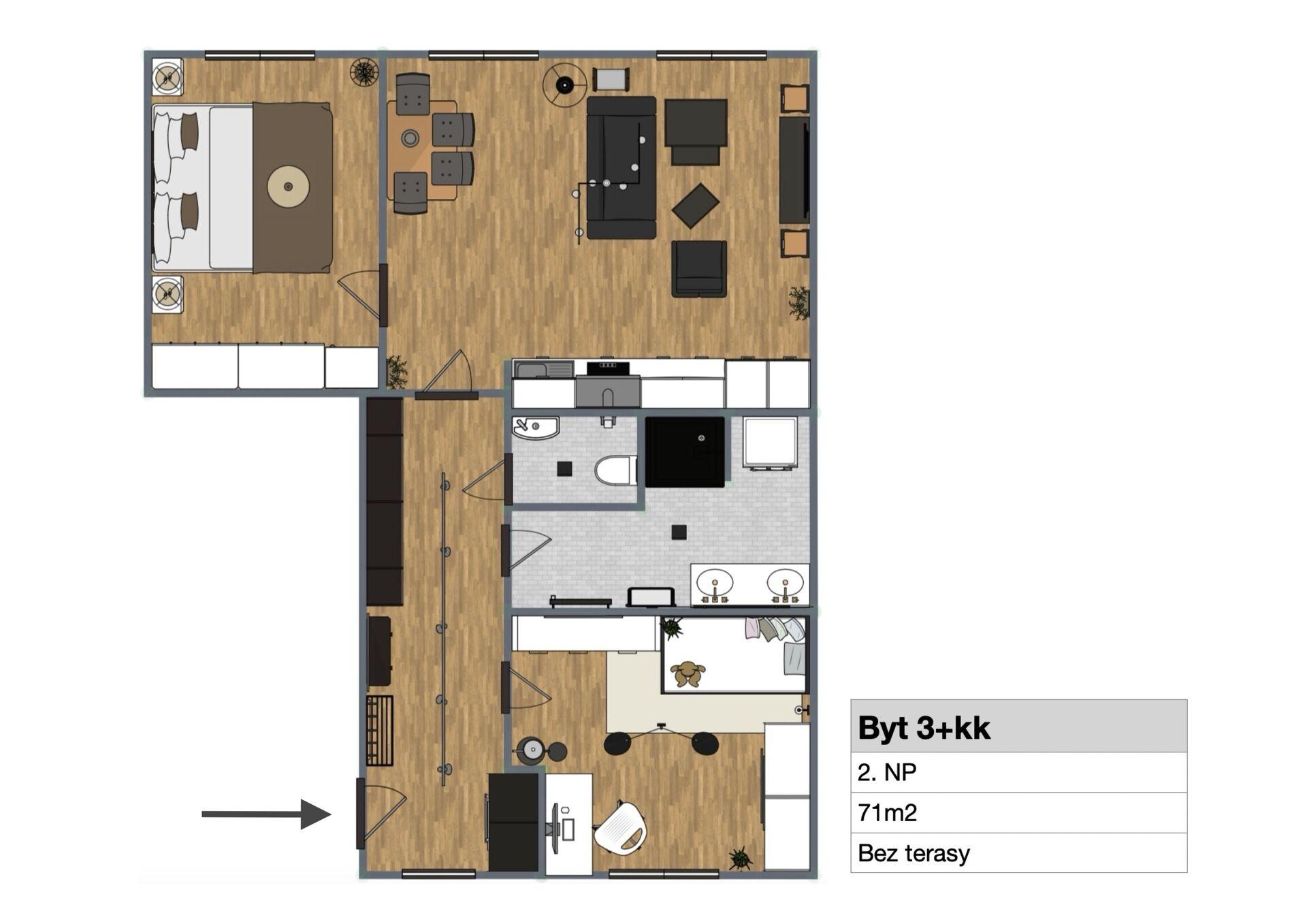 | Dispozice/podlahová plocha: | 3+kk/71 m² |