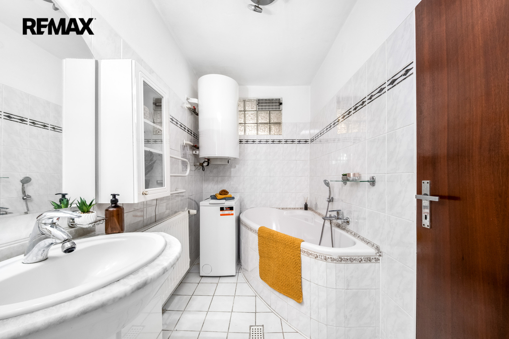 Koupelna nabízí jak vanu, tak sprchový kout. Toaleta je samostatná.