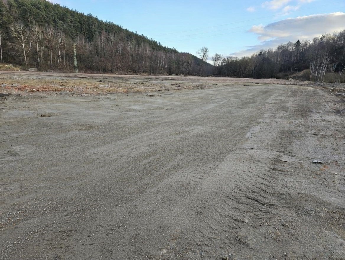 Pronajmeme areál o velikosti 50.000 m2 nebo jeho části. Cena 5 Kč/1m2 /měsíc + DPH. Areál je z části oplocen. V areálu je elektrická přípojka, napojení na vodu a odpady. Je dobře přístupný z hlavní silnice. Součásti pozemku je také 4 patrová budova o užitné ploše 1.200 m2. Areál se dá rozdělit na několik skladových částí a ty se dají samostatně oplotit. Vhodné pro skladování vozidel, zpracování hmot apod.