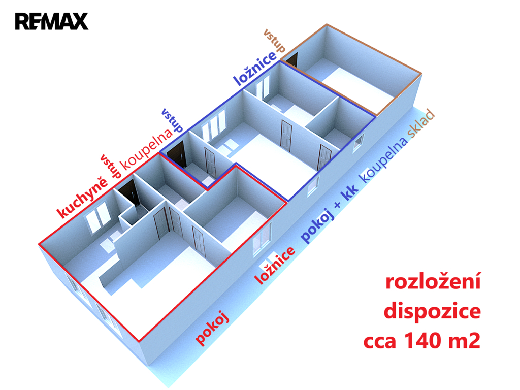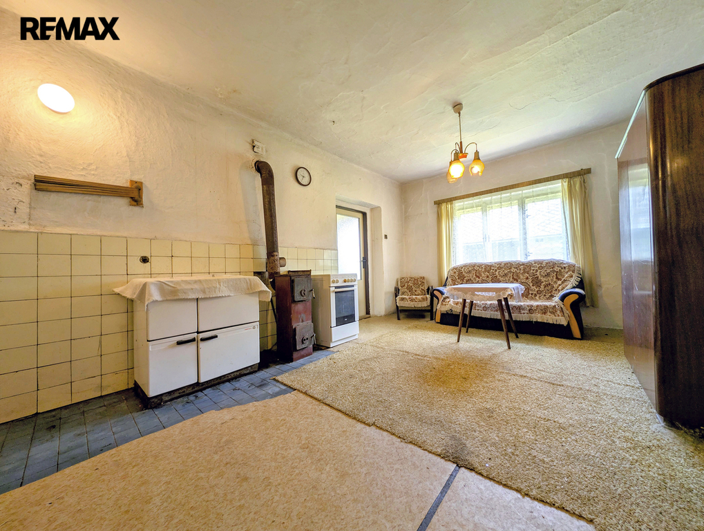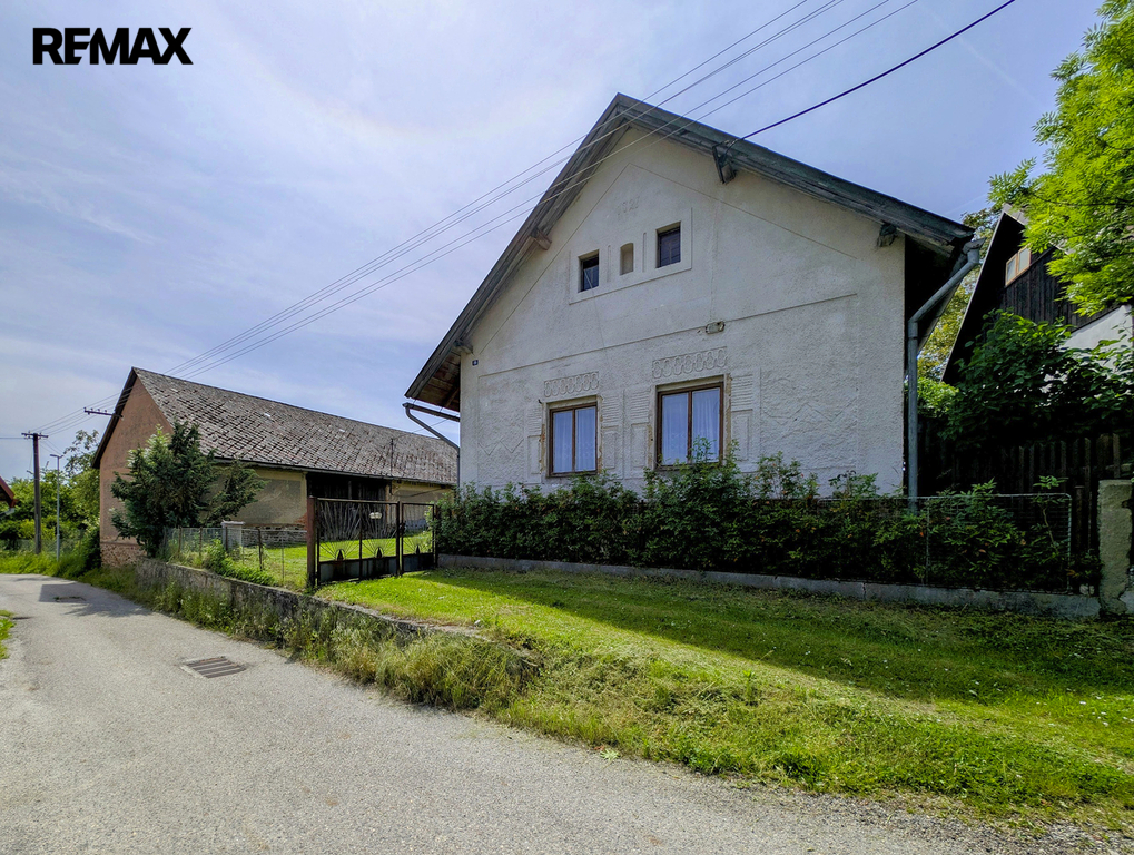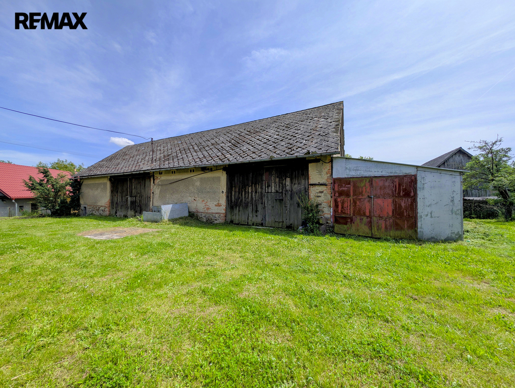 Náš stoletý dům z kamene a cihel v současnosti ukrývá pod svojí sedlovou střechou dvě bytové jednotky 2+kk, jednu ve stavu původním a druhou z počátku století. Menší kamenný sklep, bývalý chlév a otevřená půda nad celým domem, doplněny protější stavbou stodoly s přístavbou garáže, umožní naplnění mnoha plánů, zahrnujících rekreaci, rodinné i vícegenerační bydlení, vše případně spojené i s drobným podnikáním.