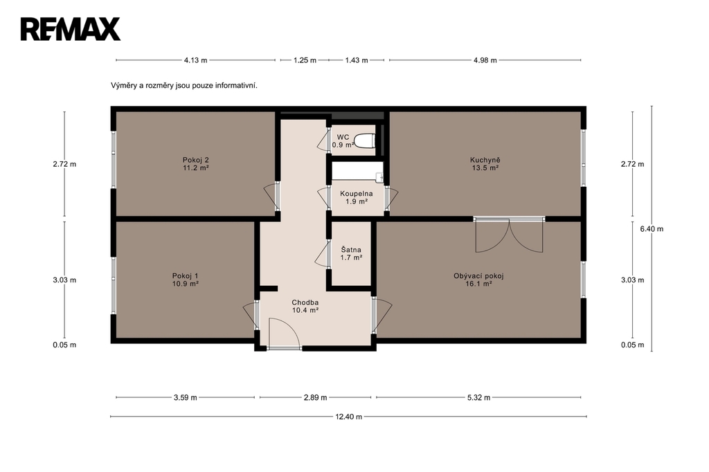 Byt o podlahové ploše 69 m2 se nachází v ulici Ořechová, ve 4. nadzemním podlaží pětipodlažního panelového domu (bez výtahu), který je ve výborném a pravidelně udržovaném stavu. Dispozice zahrnuje prostorný obývací pokoj s kuchyňským koutem (30 m2), dva pokoje (každý o velikosti 11 m2), koupelnu, samostatnou toaletu, velkorysou vstupní chodbu s možností vestavěných skříní a praktickou komoru.