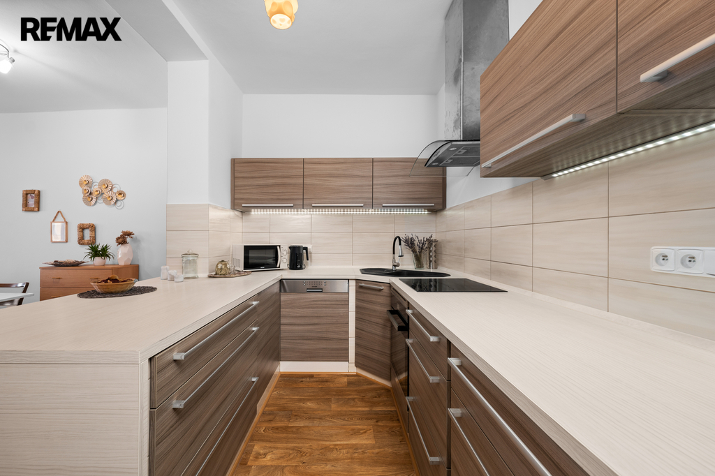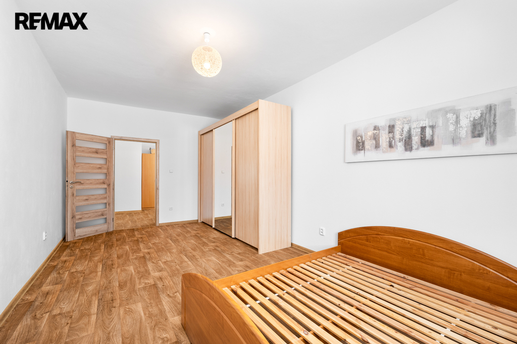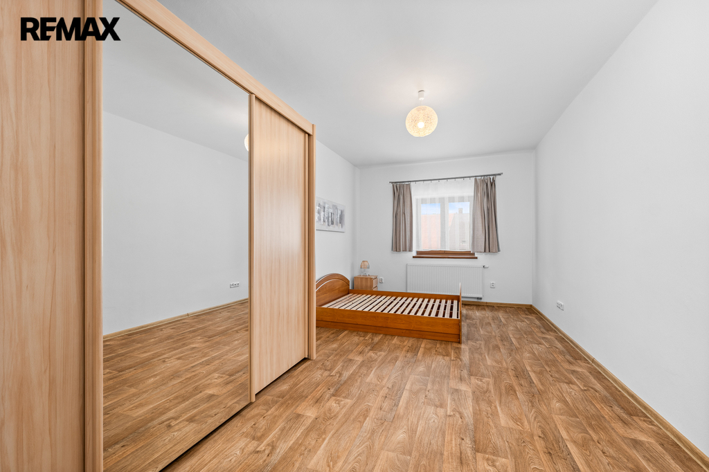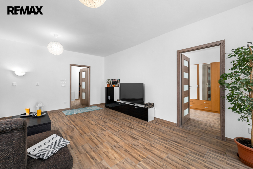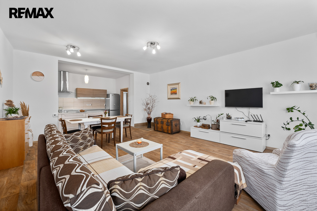 Byt 3+kk disponuje vstupní chodbou (hala), světlého obývacího pokoje s navazující jídelní částí a kuchyňským koutem (plně vybaven spotřebiči), dalších dvou samostatných pokojů a koupelny (vana, sprchový kout) s WC.