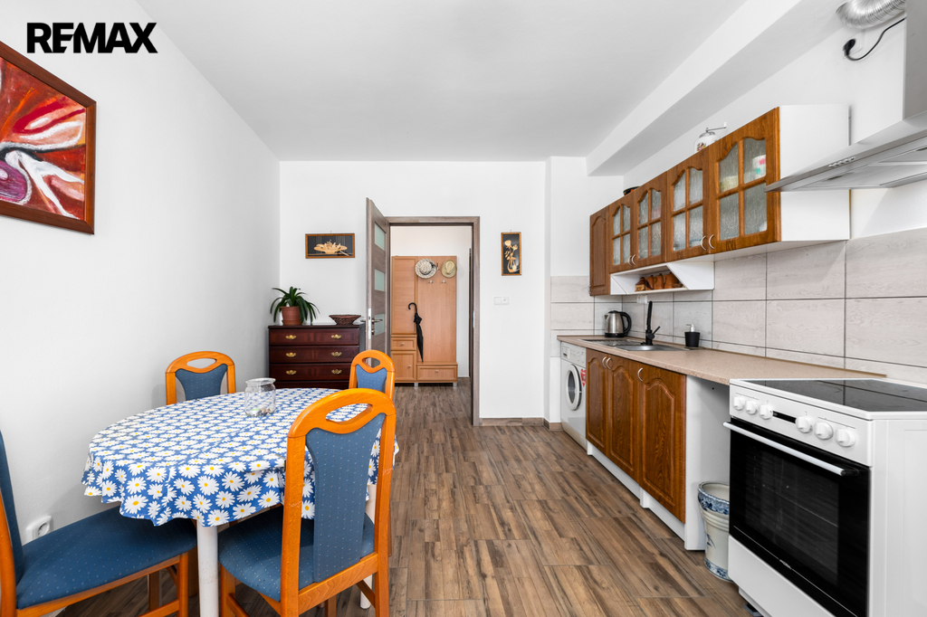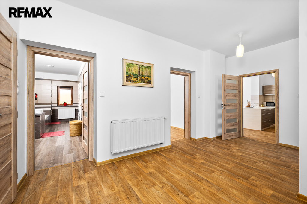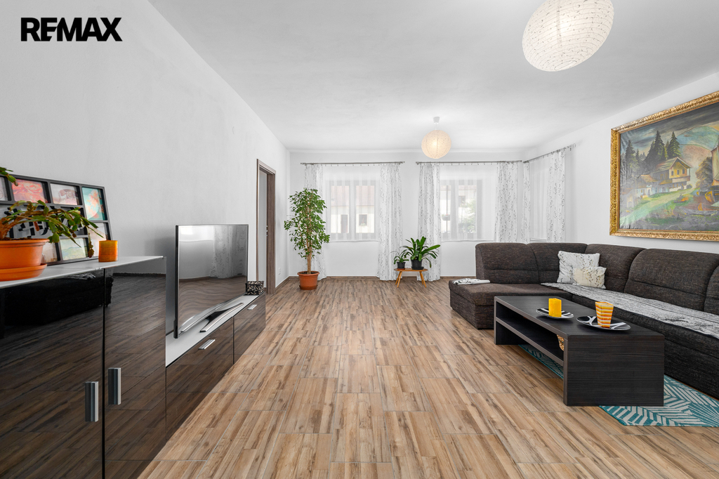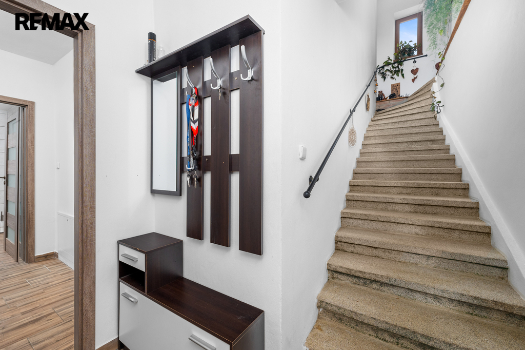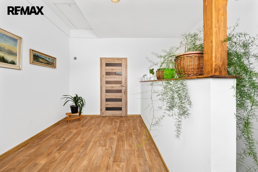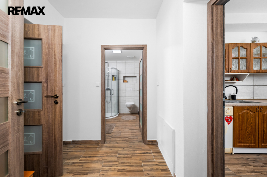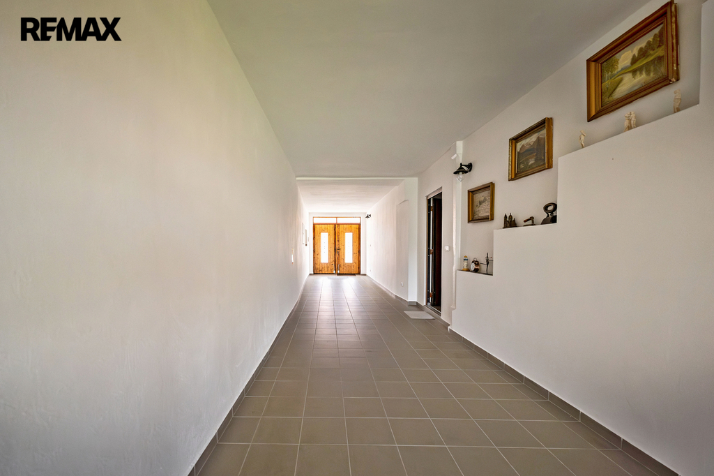 Z průjezdu domu (spojujícího zahradu s hlavním vjezdem do objektu a na pozemek), který může sloužit i jako garáž pro několik automobilů, je vstup do chodby a dále do obou samostatných bytových jednotek. V přízemí se nachází byt s dispozicí 2+1, v 1. patře je byt 3+kk. Prostorná půda nabízí možnost pro vybudování dalšího bytu (vše stavebně technicky připraveno, včetně rozvodů).