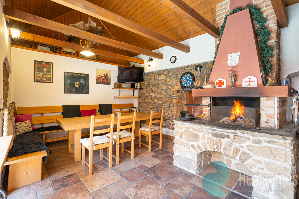 Usedlost tvoří dva samostatné domy, které mohou fungovat nezávisle nebo jako jeden celek. Hlavní obytná část o rozloze 197 m² je jako stvořená pro velkou rodinu, která hledá komfort, prostor a klid, a přitom nechce slevit z nároků na kvalitu a styl. Druhý dům (97,5 m²) slouží dnes jako zavedený penzion s kapacitou 7 lůžek, stylovou společenskou místností s krbem, výčepem a kuchyňkou. Tento dům však nabízí i skvělou možnost částečného pronájmu, rekreačního ubytování či využití pro podnikání – ideální pro ty, kdo chtějí spojit životní komfort s chytrou investicí.