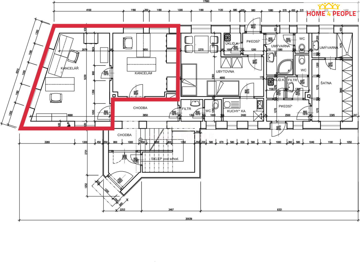 - Plocha kanceláří: 150 m²