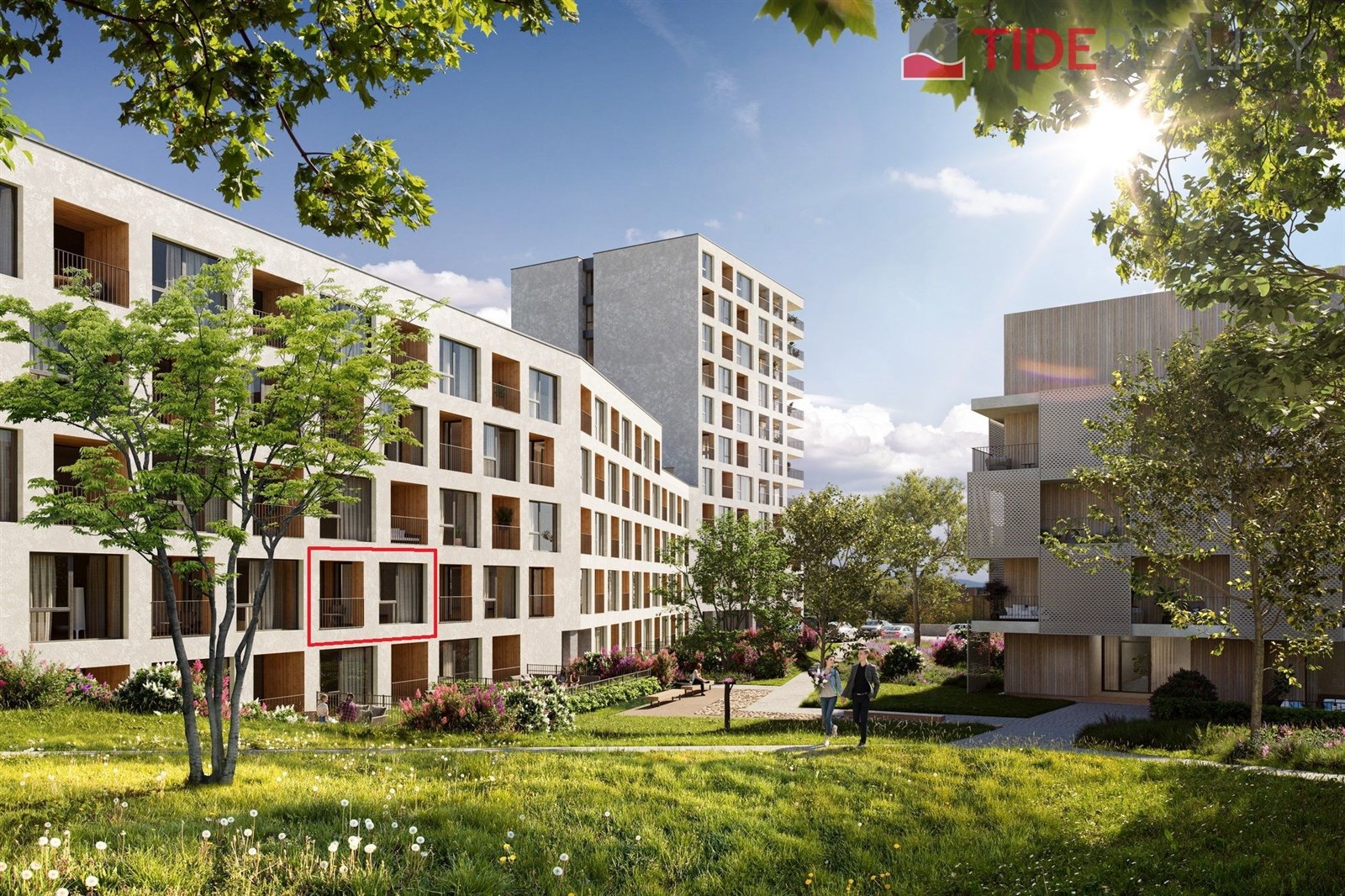 Tento slunný, západně orientovaný byt s lodžií do příjemného vnitrobloku, je řešen jako 2+kk o podlahové ploše 53 m2 + 4 m2 lodžie. Byt je situovaný ve 1. patře budovy B a skládá se z obývacího pokoje s kuchyňským koutem, ložnice, koupelny a předsíně. Standardní vybavení bytů zahrnuje plovoucí podlahy, interiérové dveře s výškou 210 cm, moderní vybavení koupelen, okna s barevným rámem a izolačním trojsklem, přípravu na vnější žaluzie. V bytech budou moderní datové rozvody formou strukturované kabeláže a přípojka STA. V projektu bude využita smart technologie pro vytápění, která pracuje se dvěma tepelnými zdroji – tepelnými čerpadly a zemním plynem. Dostatečná kapacita parkovacích míst převážně v podzemních garážích, ale i venku. Jedná se o velkoryse koncipovaný soubor bytových domů umístěných v zeleni nabídne široké rozpětí bytů od 1+kk po 5+kk s terasami, balkony či předzahrádkami.