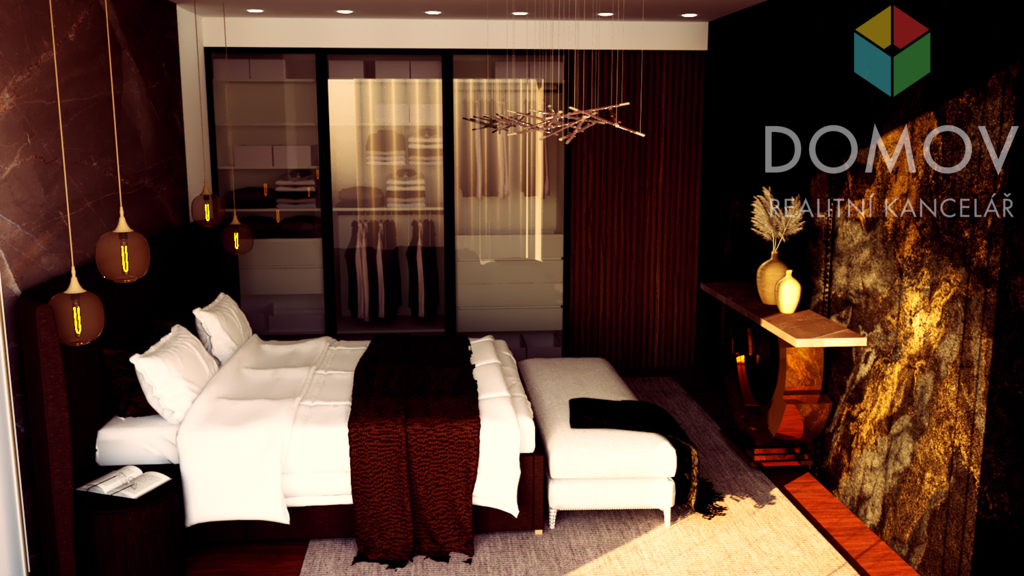 Jen samotný obývací pokoj s kuchyňským koutem má výměru 45,1 m2 a velké jsou i obě ložnice (23,5 m2 a 19,6 m2). Dále v bytě najdeme koupelnu, samostatné WC, chodbu a prostornou šatnu.
