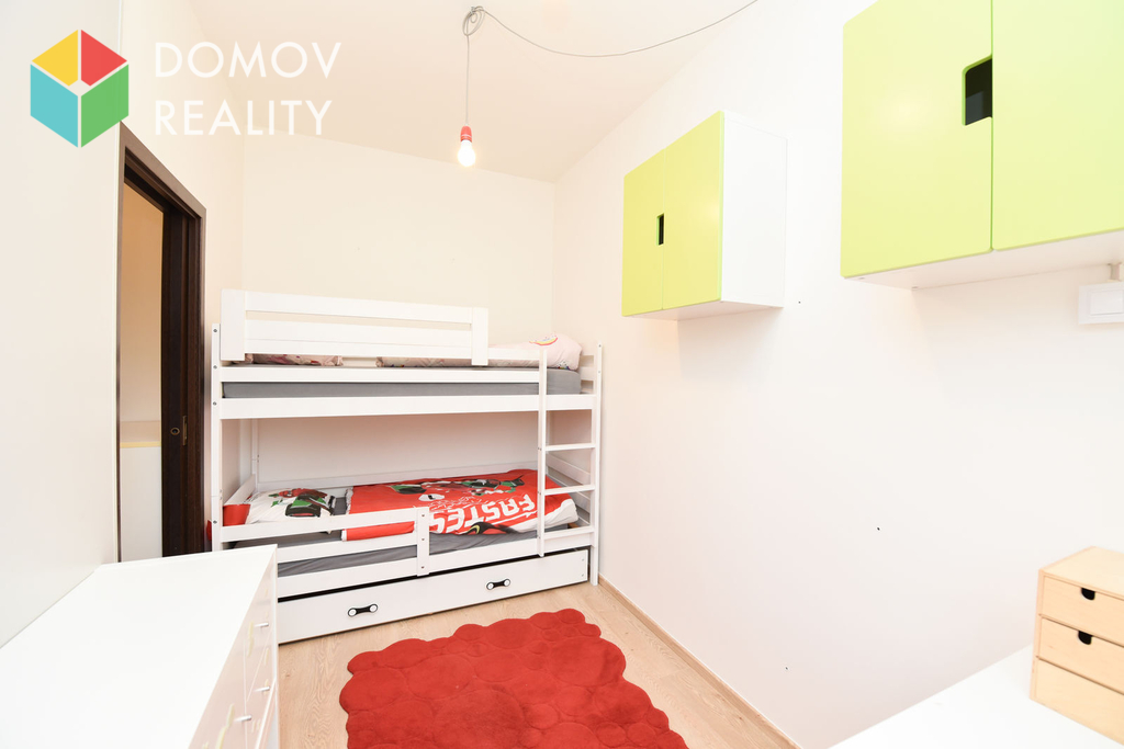 Původní dispozice bytu byla 2+kk, avšak díky chytré úpravě majitele nyní nabízí komfortní řešení bytu 3+kk.