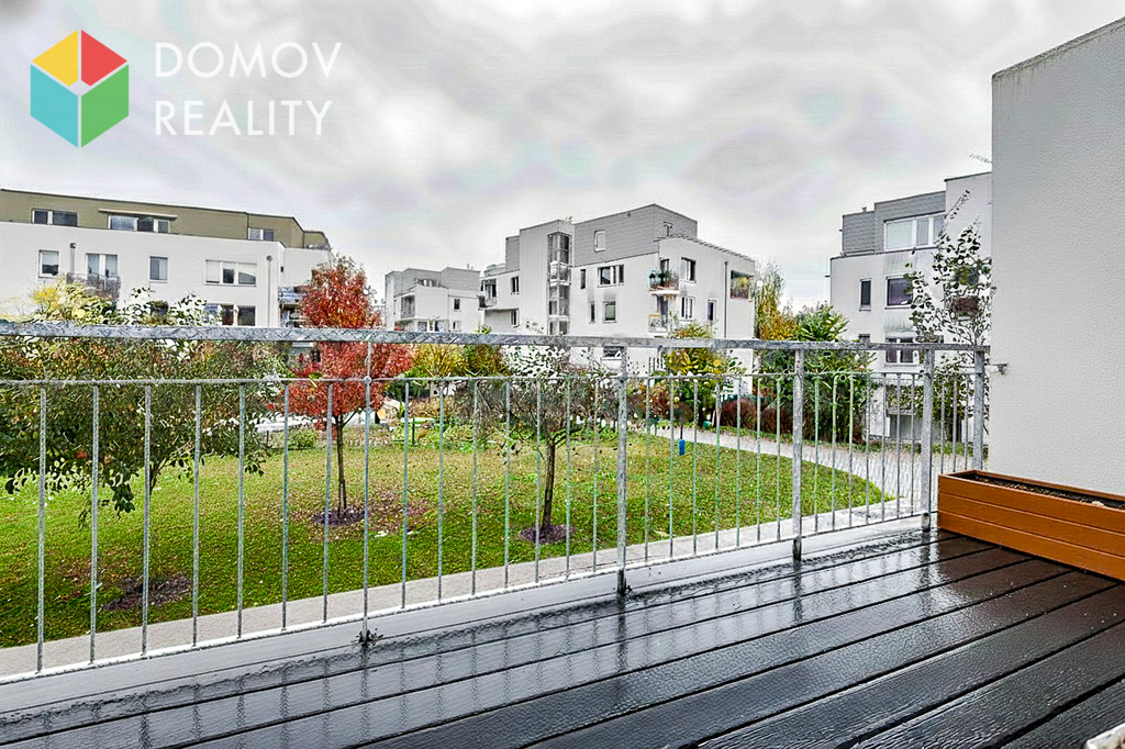 Moderně vybavená kuchyň s kuchyňskou linkou a spotřebiči volně navazuje na obývací pokoj, ze kterého je přístup na prostorný balkon. Dále se v bytě nacházejí dva samostatné pokoje.