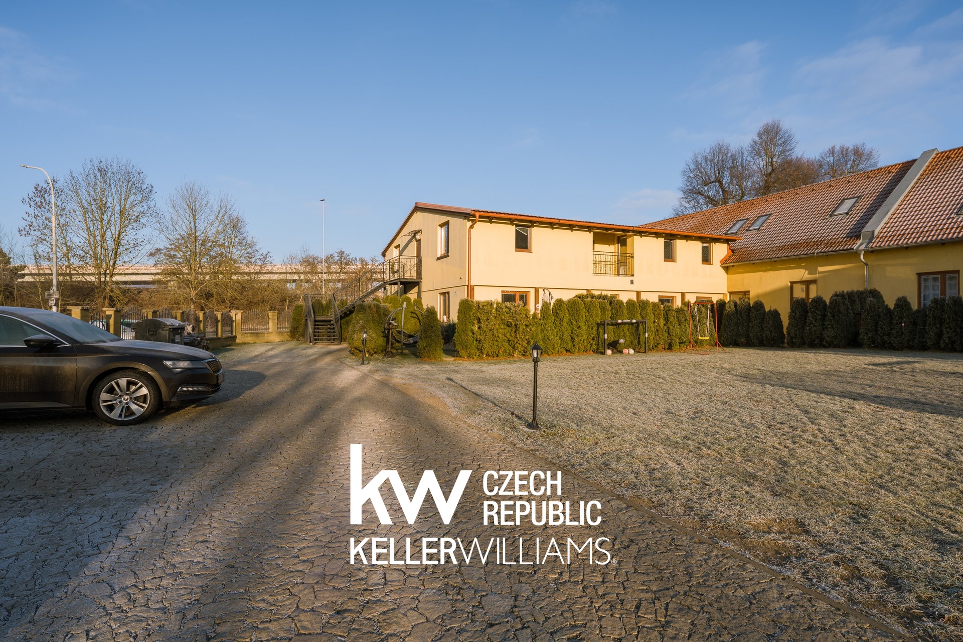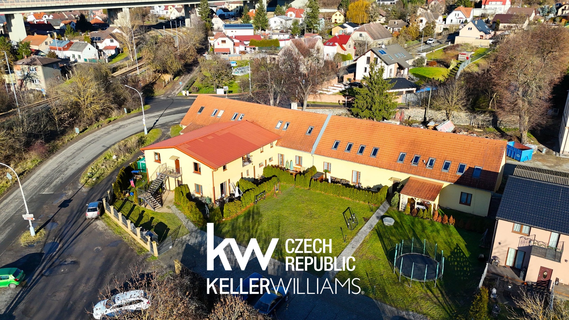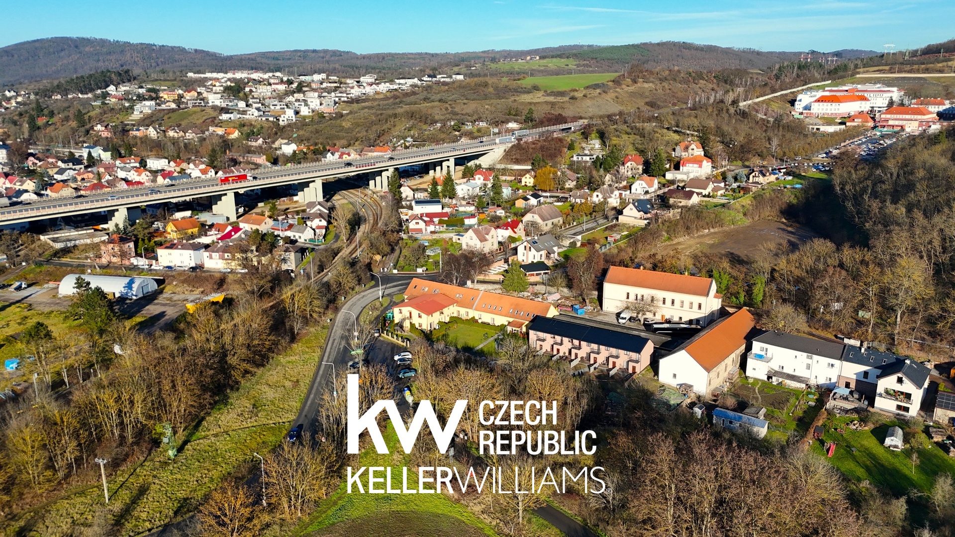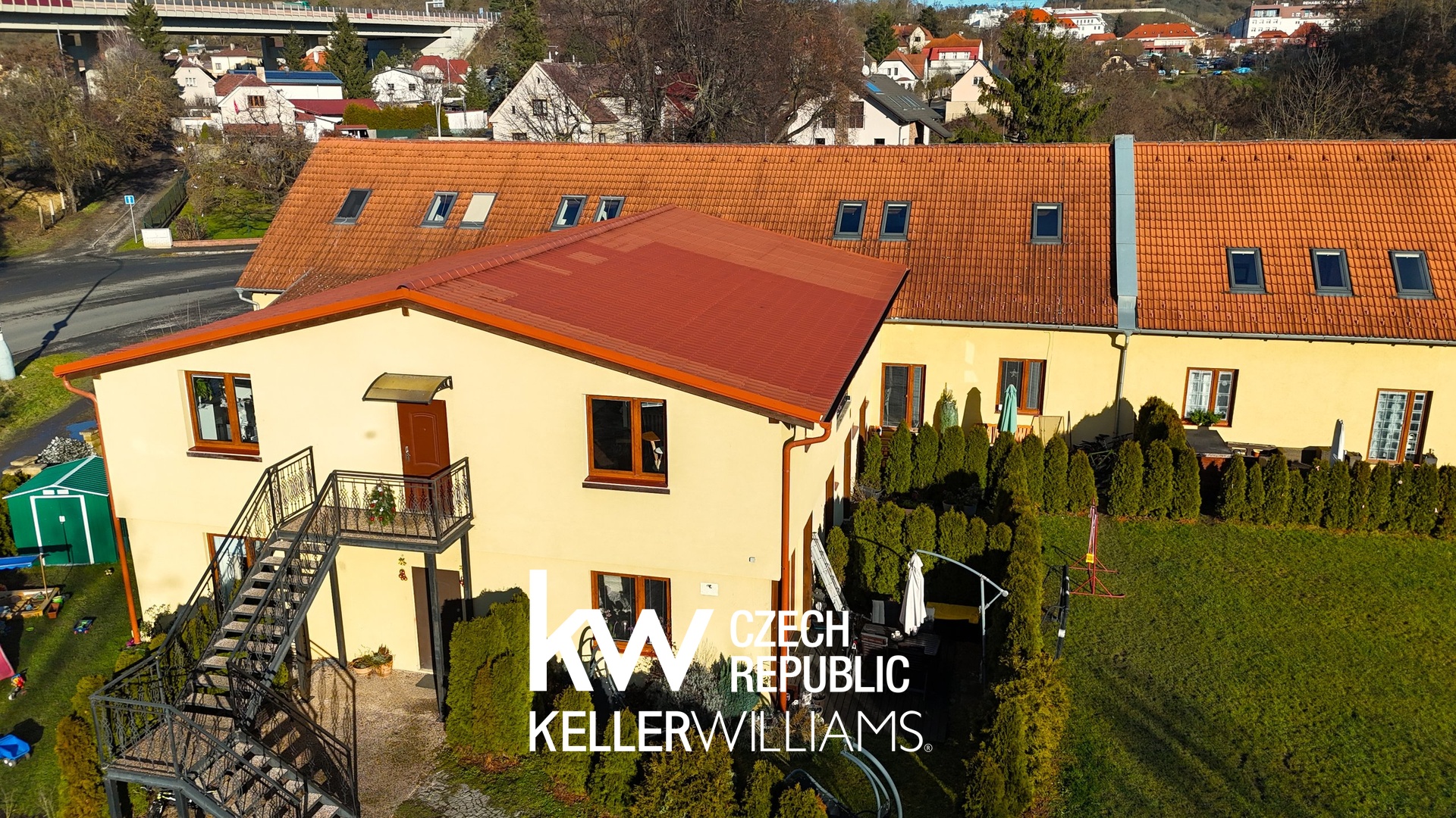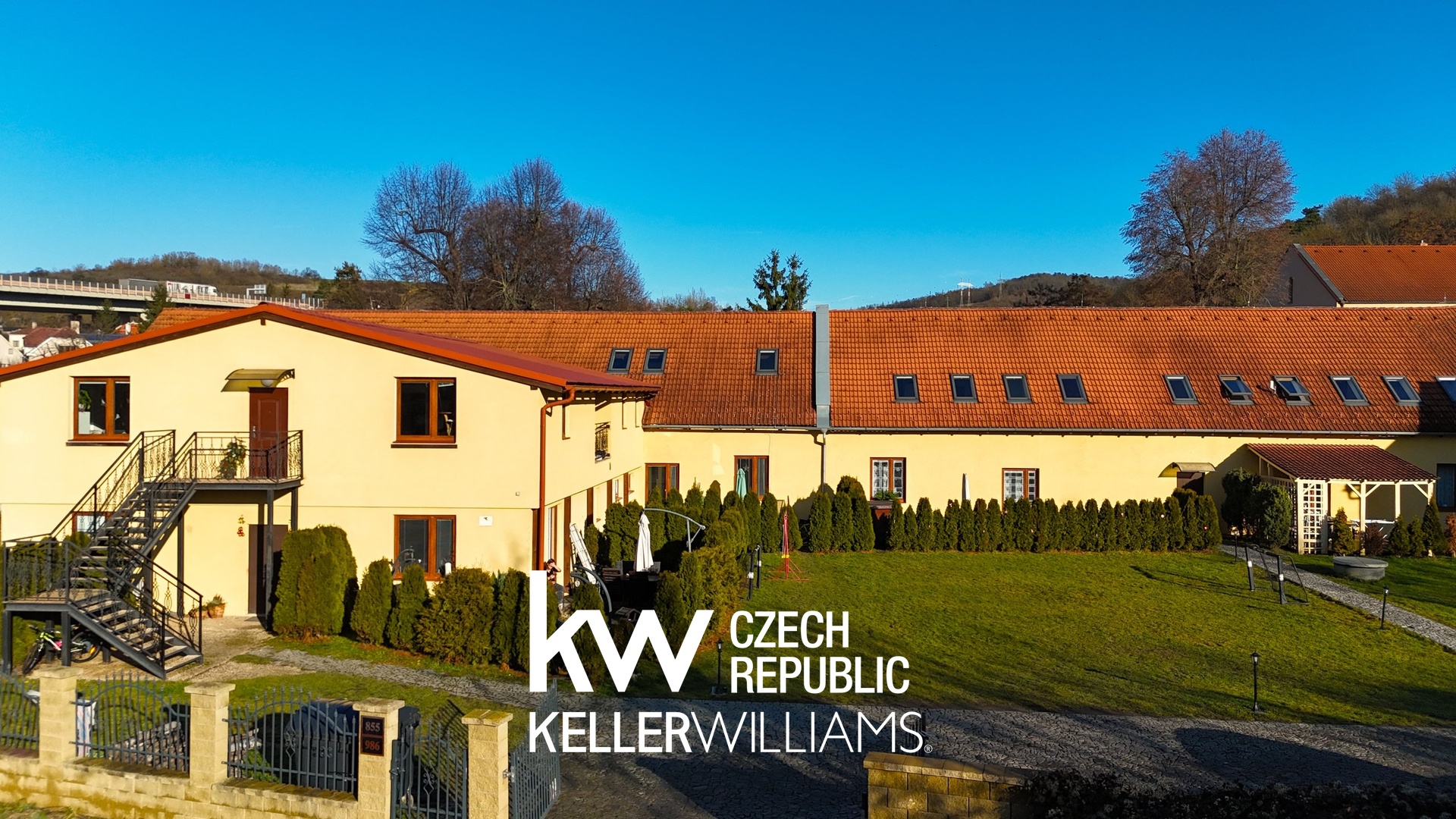 Doprava: Snadný nájezd na dálnici a výborné napojení na Prahu jak individuálně, tak i veřejnou dopravou – autobusem nebo vlakem.