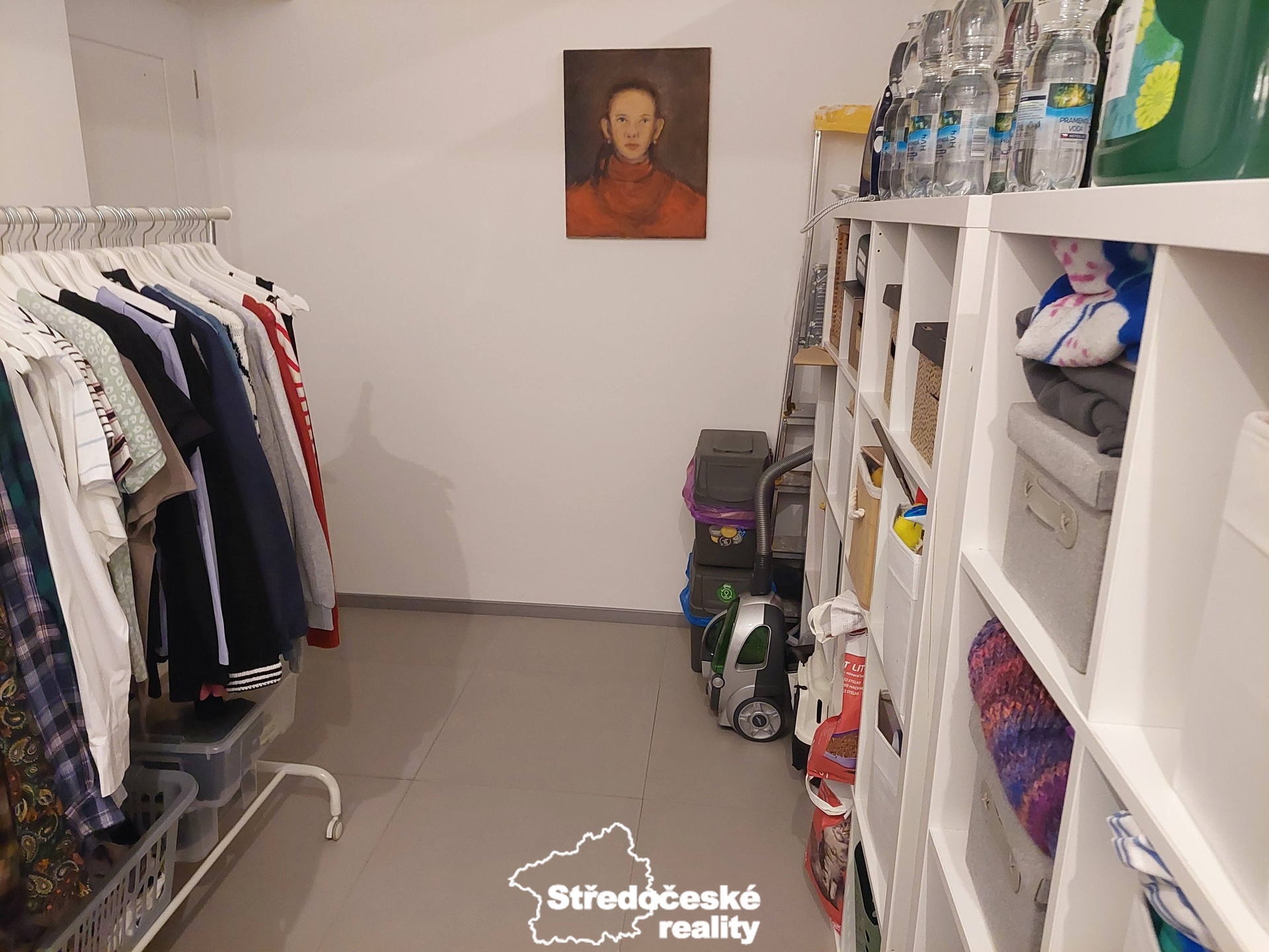 V chodbě bytu je praktická vestavěná skříň s velkým úložným prostorem.