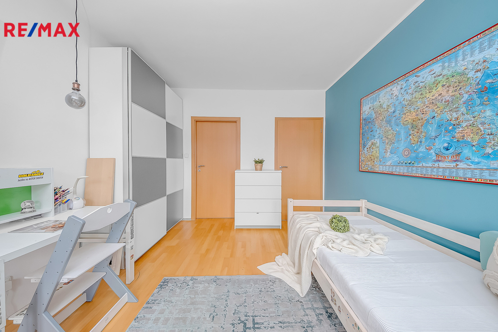 Byt prošel kompletní rekonstrukcí a je připraven k okamžitému nastěhování bez nutnosti dalších investic. Dispoziční řešení bytu je velmi praktické, což ocení zejména rodiny s dětmi. Součástí bytu jsou dvě chodby, které přehledně oddělují jednotlivé části bytu. Velkou předností bytu je nadstandardně prostorná koupelna, vybavená vanou, sprchovým koutem a dvěma umyvadly. V koupelně je také místo na pračku se sušičkou. Obývací pokoj je velmi prostorný, světlý a propojený s kuchyňským koutem, dále pak navazuje samostatná ložnice. Byt dále disponuje samostatným pokojem, šatnou a oddělenou toaletou. Díky své velikosti, modernímu vzhledu a promyšlenému uspořádání je byt ideální volbou pro rodinné bydlení.