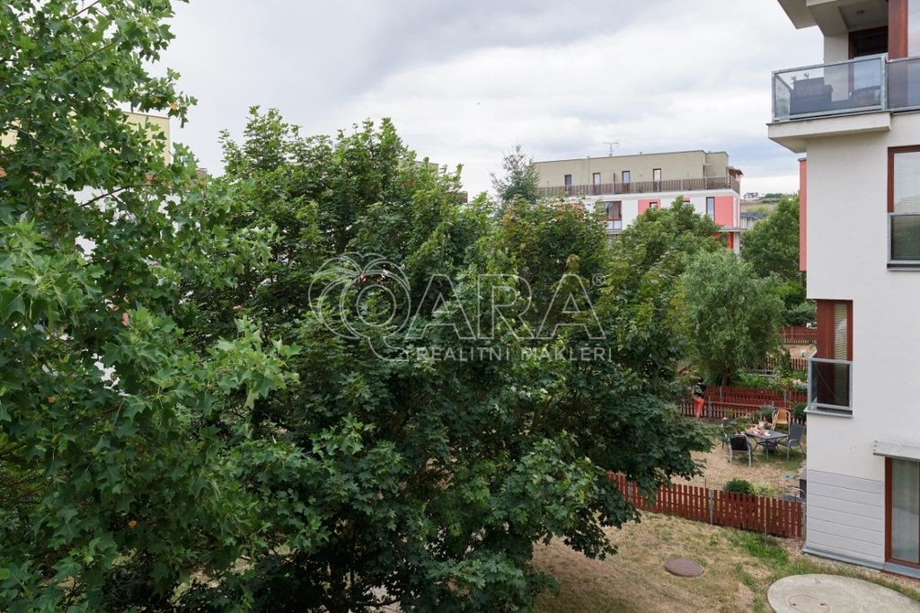 Ze vstupní chodby, kde nalezneme šatní skříň a botník, vcházíme do prostorného obývacího pokoje s kuchyňským koutem. V místnosti je pohodlná sedací souprava, jídelní stůl, obývací stěna s TV a wifi routerem. V kuchyňském koutu je plně vybavené kuchyňská linka (lednice, mrazák, myčka, mikrovlnná trouba atd.). Z obytné místnosti vcházíme do ložnice s manželskou postelí s mnoha úložnými prostory na stěně za postelí. Přímo na ložnici navazuje samostatná prostorná koupelna s vanou a pračkou. Dostatek světla a slunce zajistí v obou místnostech velká francouzská okna, která jsou orientována na jih.