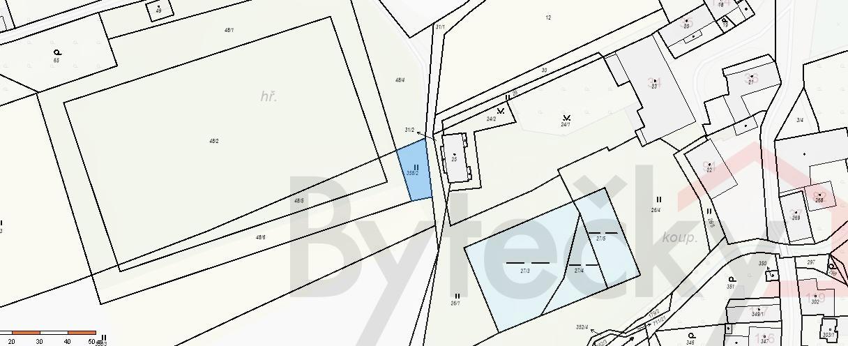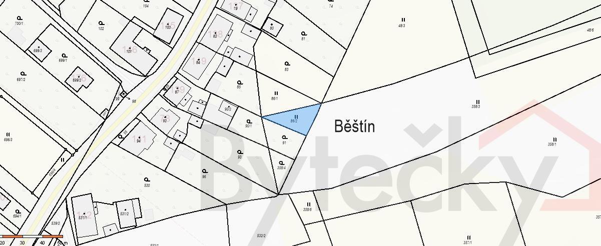 Běštín - prodej pozemku 8080 m2 v obci u fotbalového hřiště v blízkosti stavebního pásma