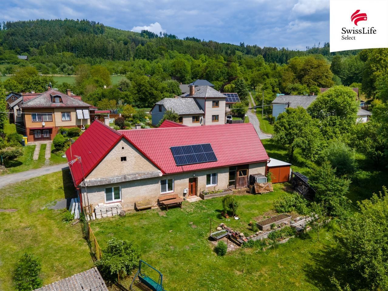Oplocená zahrada na jihozápad má 411 m2. Přes obecní travnatou cestičku a potok k domu patří 688 m2 trvalého travního porostu ve stráni (nyní pokryté náletovými křovinami a stromy). Svádí to vyšplhat se nahoru a rozhlédnout se po kraji. Je na co koukat.