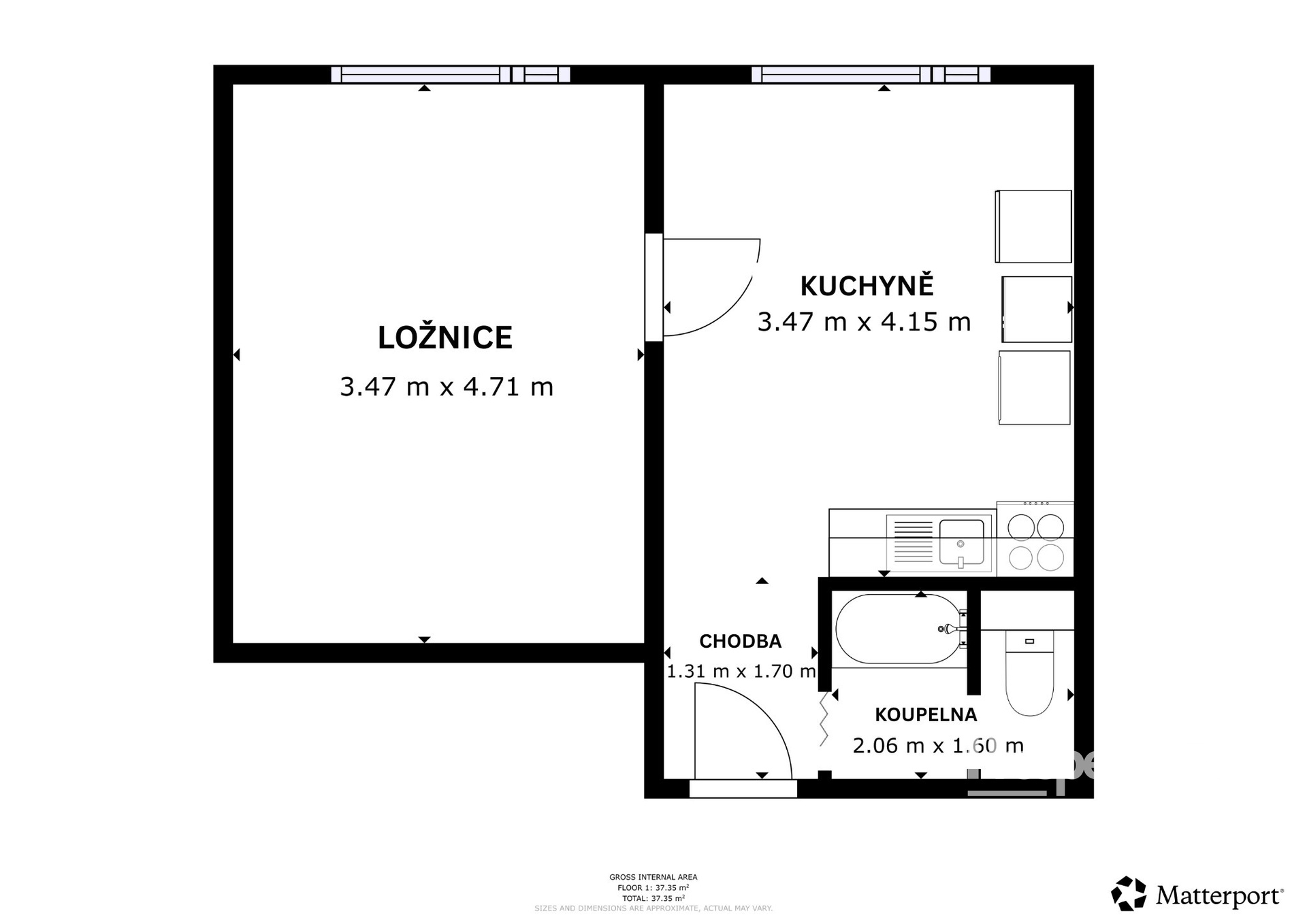 - Celková podlahová plocha: 35 m²