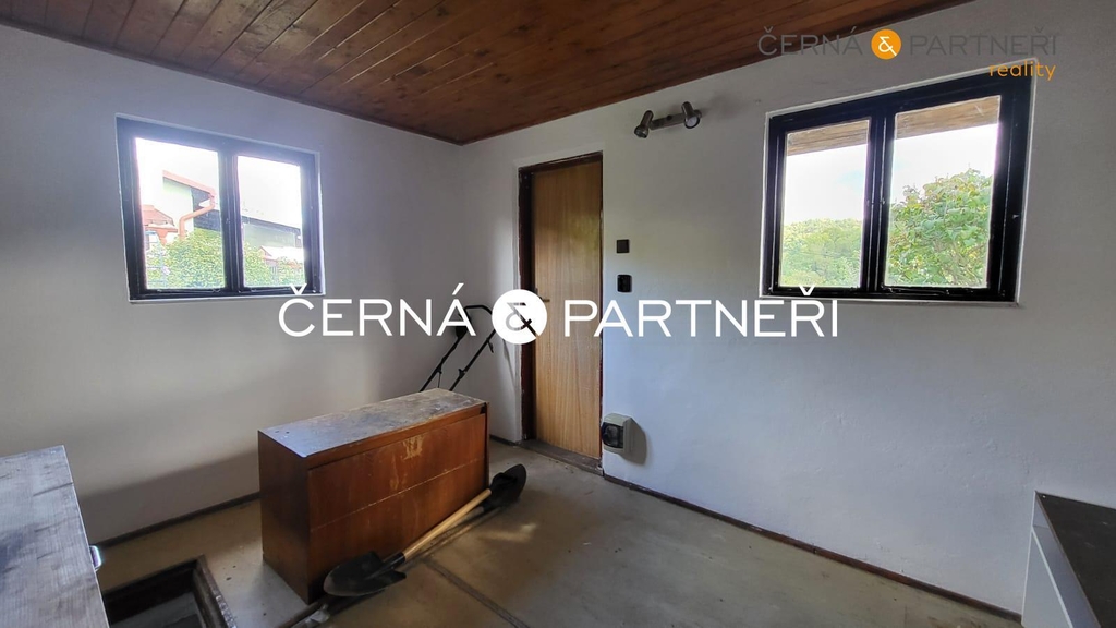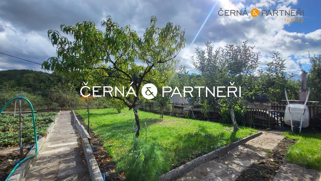 Součástí pozemku je chatka se sklepem a několik plodících stromků (Jabloně, Broskvoně)
