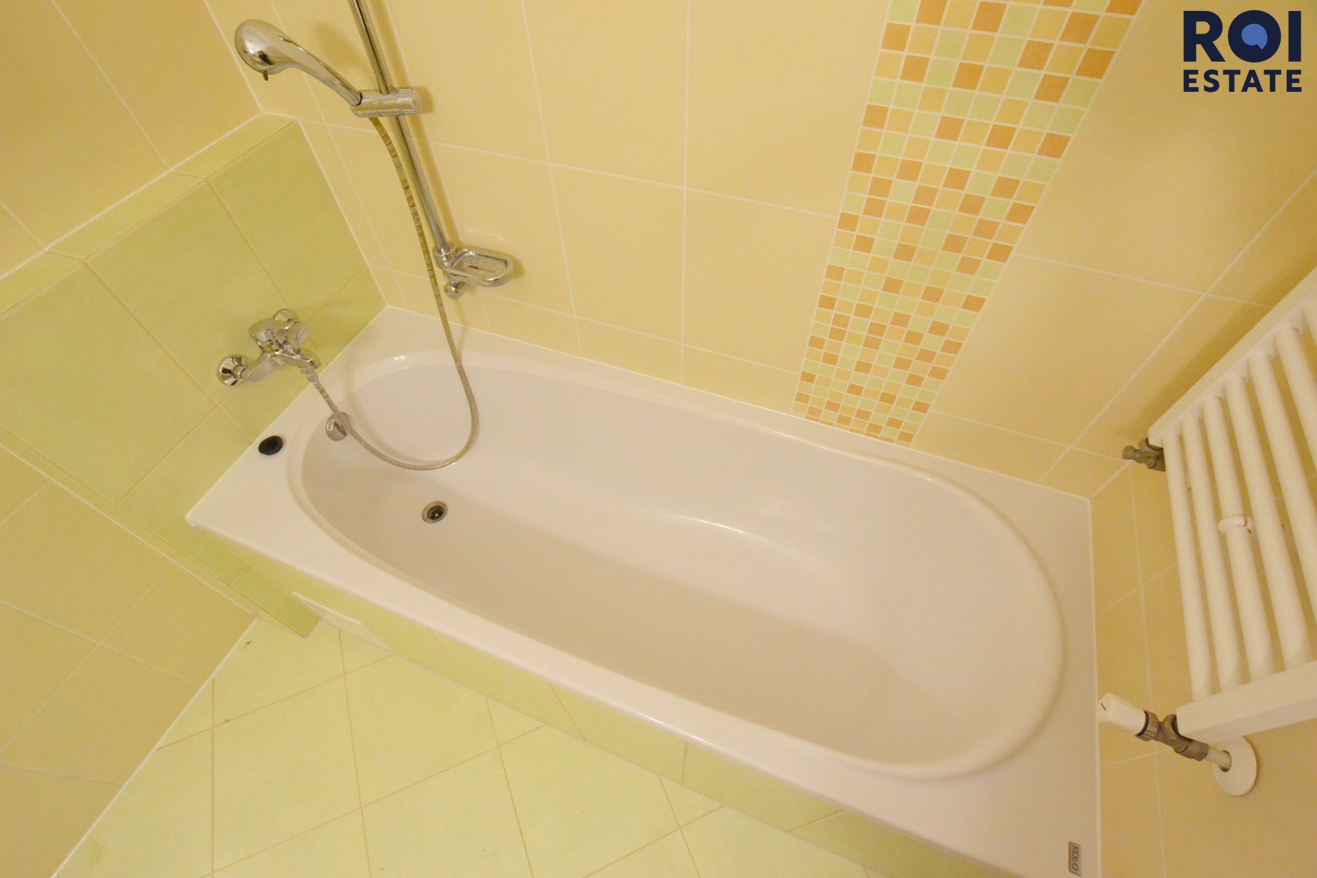 Koupelna je oddělena od toalety a disponuje prostornou vanou, ideální pro večerní relaxaci. Ložnice je orientována stejným směrem jako obývací pokoj, takže vás každé ráno přivítá klidný výhled směrem k lesu. Nechybí ani velká šatní skříň, která zajistí dostatek prostoru pro vaše věci.