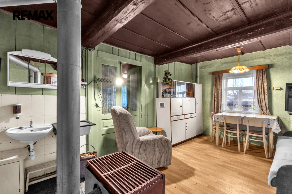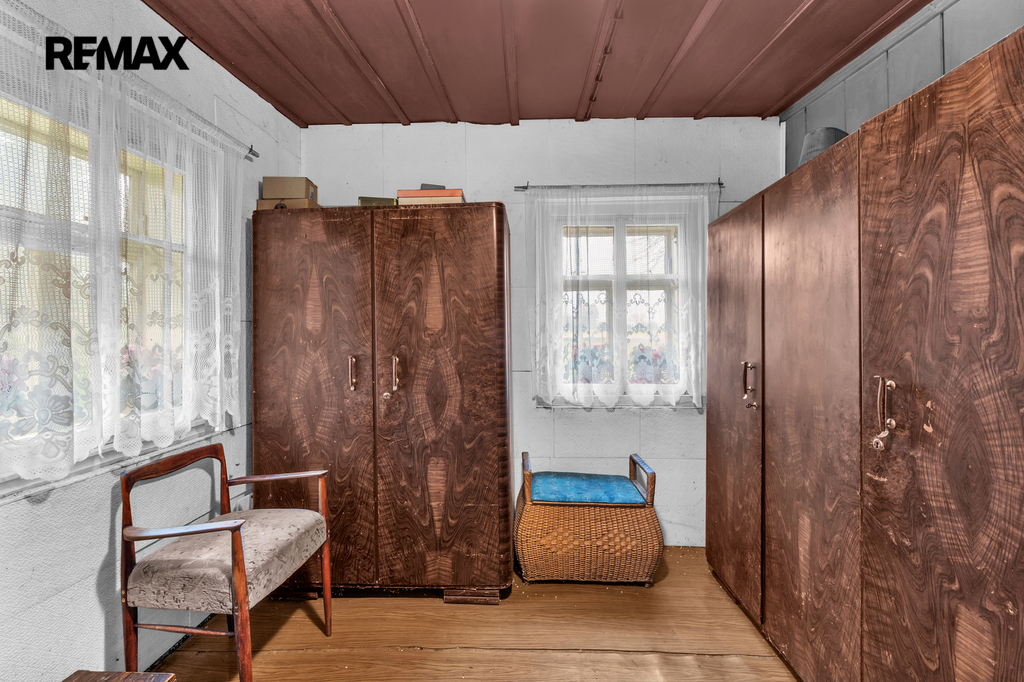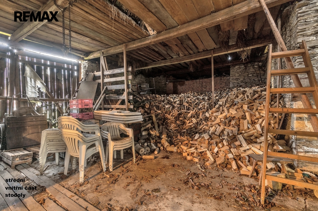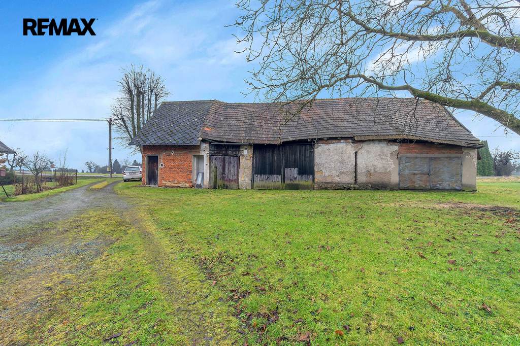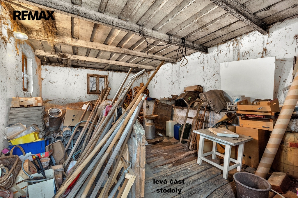 Součástí nemovitosti je velká stodola (cca 147 m²), jejíž střecha vyžaduje rekonstrukci, nabízí možnost využití jako dílna, sklad nebo prostor pro další úpravy.