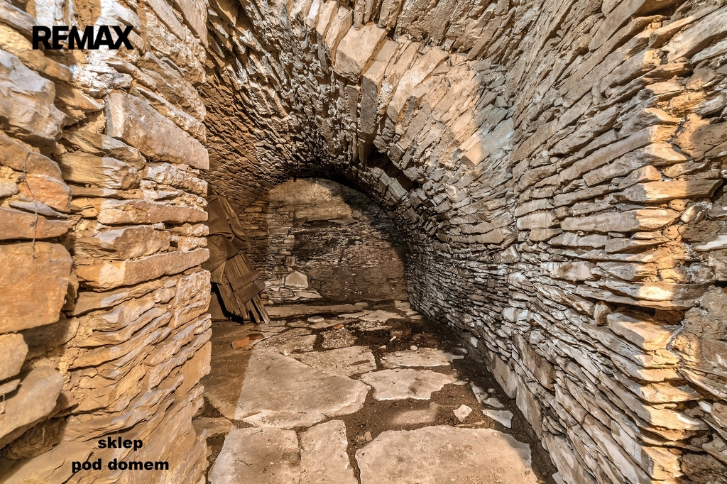 Dům je částečně podsklepený – ze zadní části vede vstup do kamenného sklepa, částečně vytesaného ve skále.